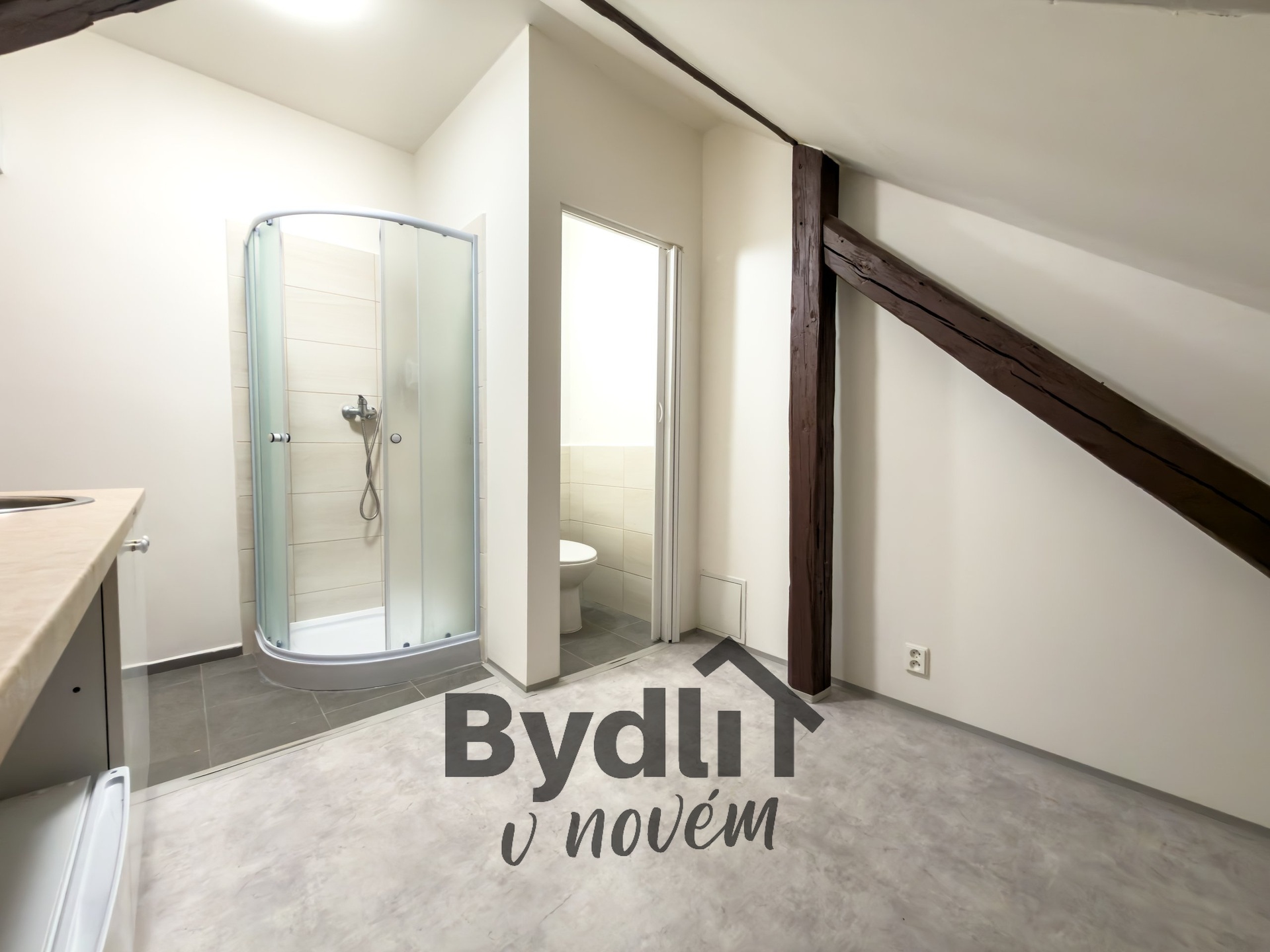 Byt je vybaven kuchyňským koutem sprchou a samostatným WC