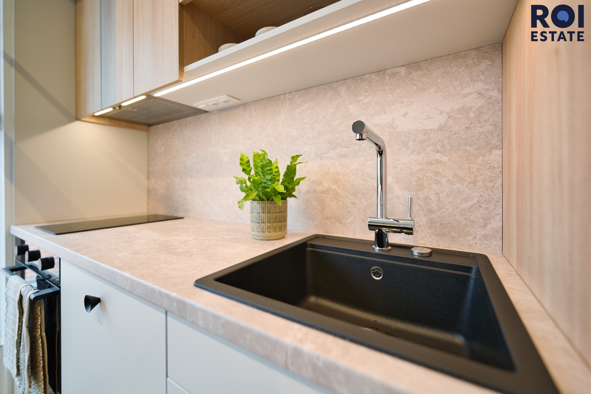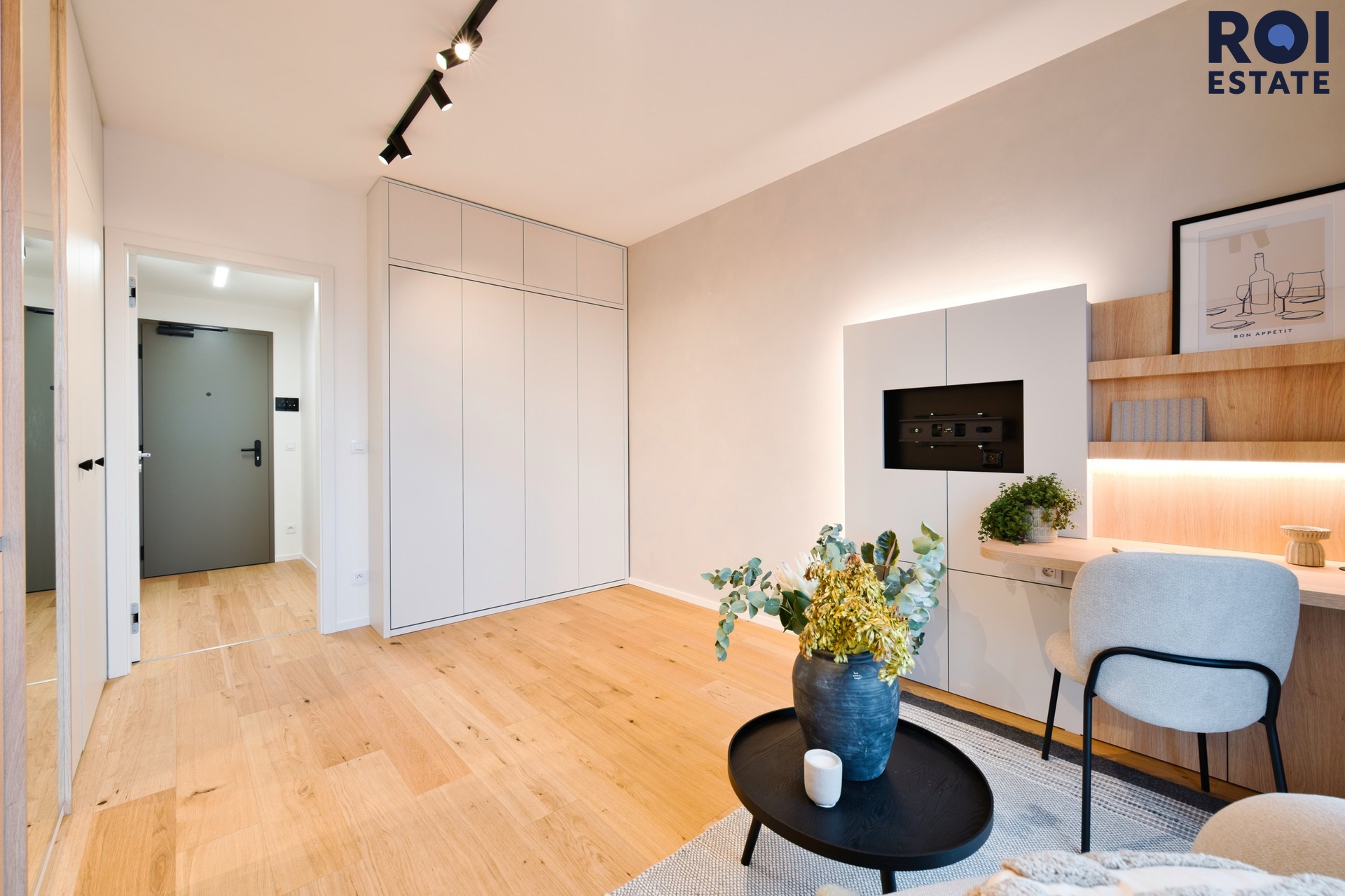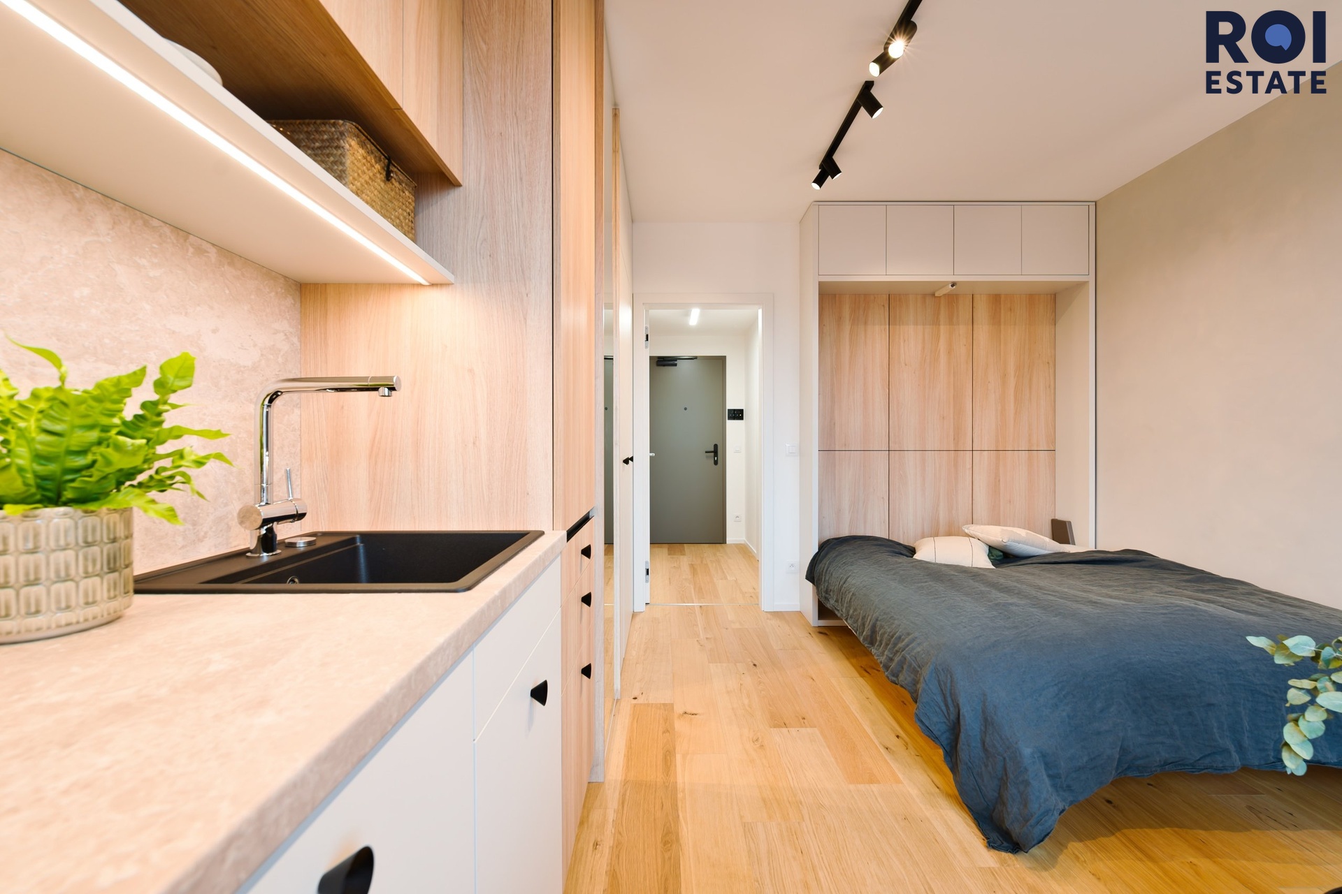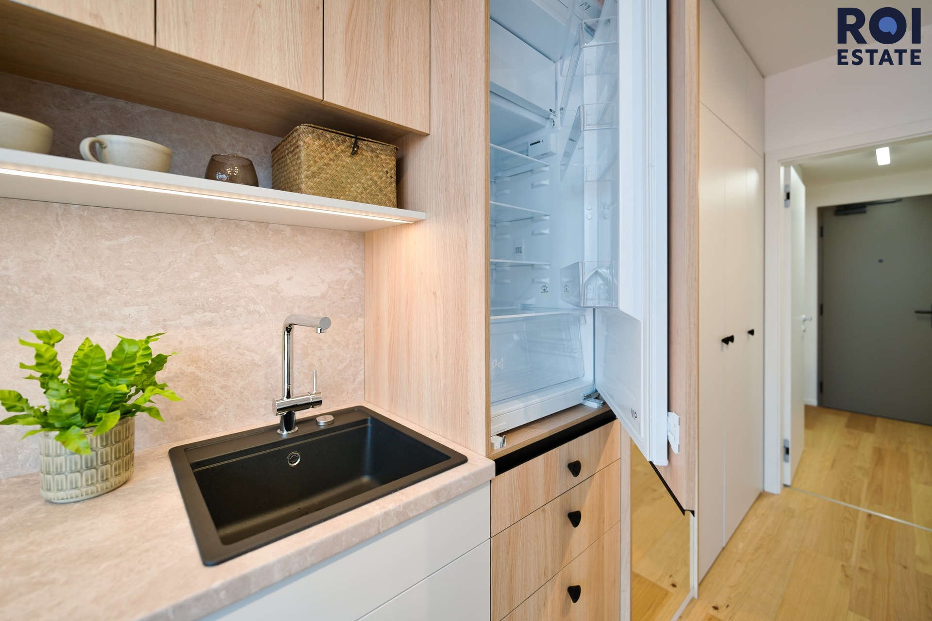 Interiérová návrhářka navrhla tento byt na míru. A je kompletně vybavený, zcela nový, světlý byt 1+kk v prémiovém rezidenčním komplexu Pekárenský dvůr – jen pár minut od centra.