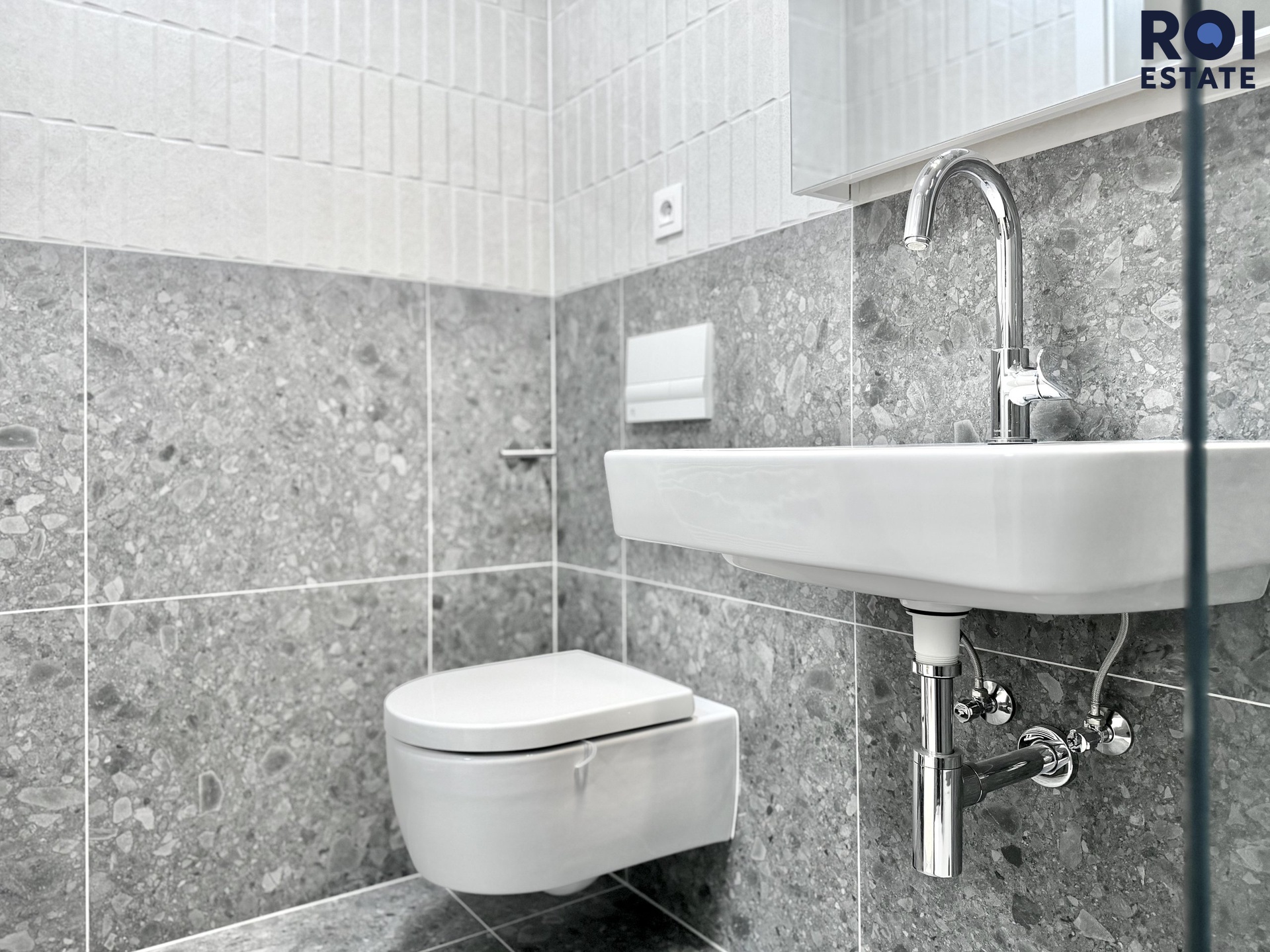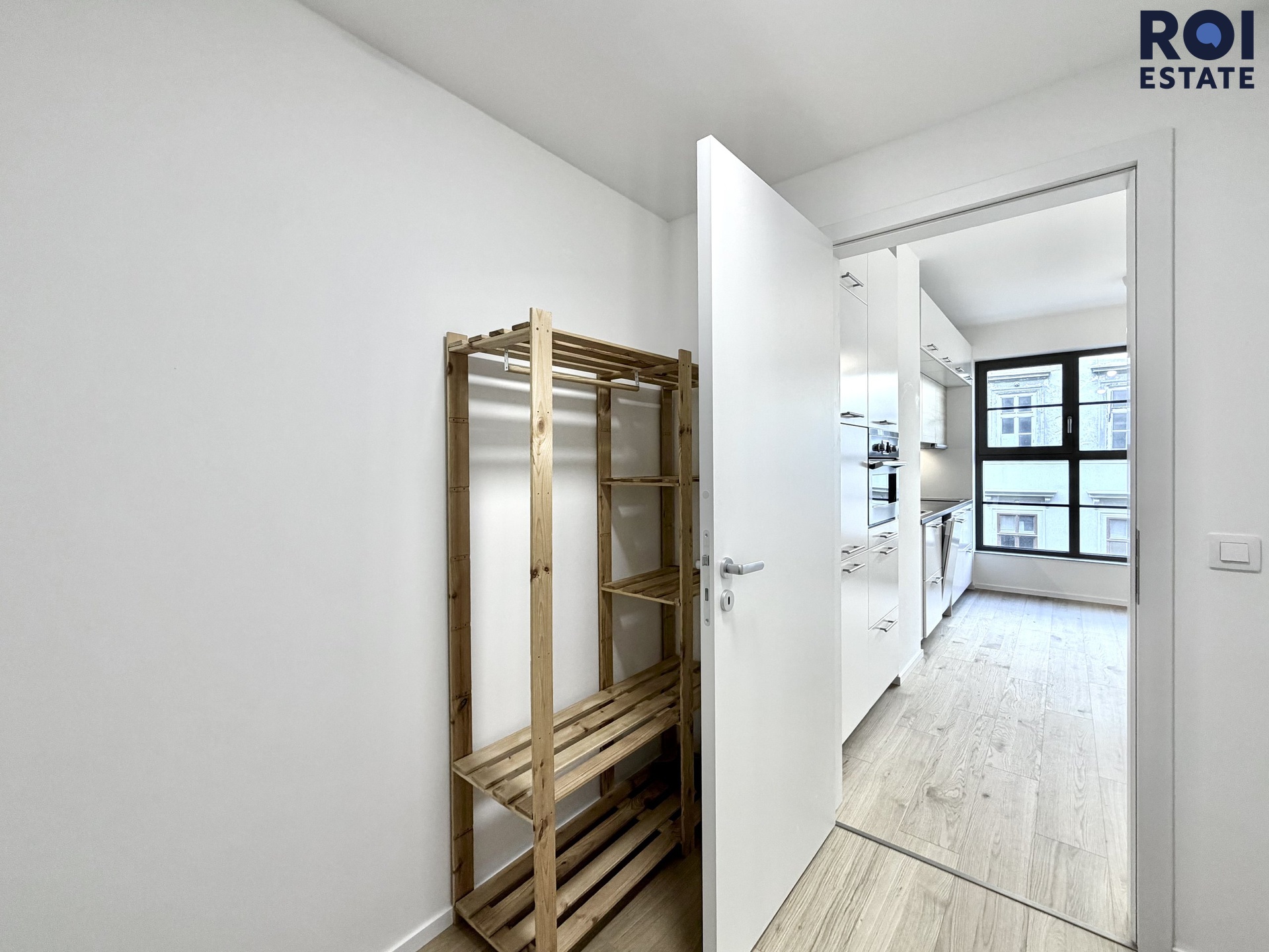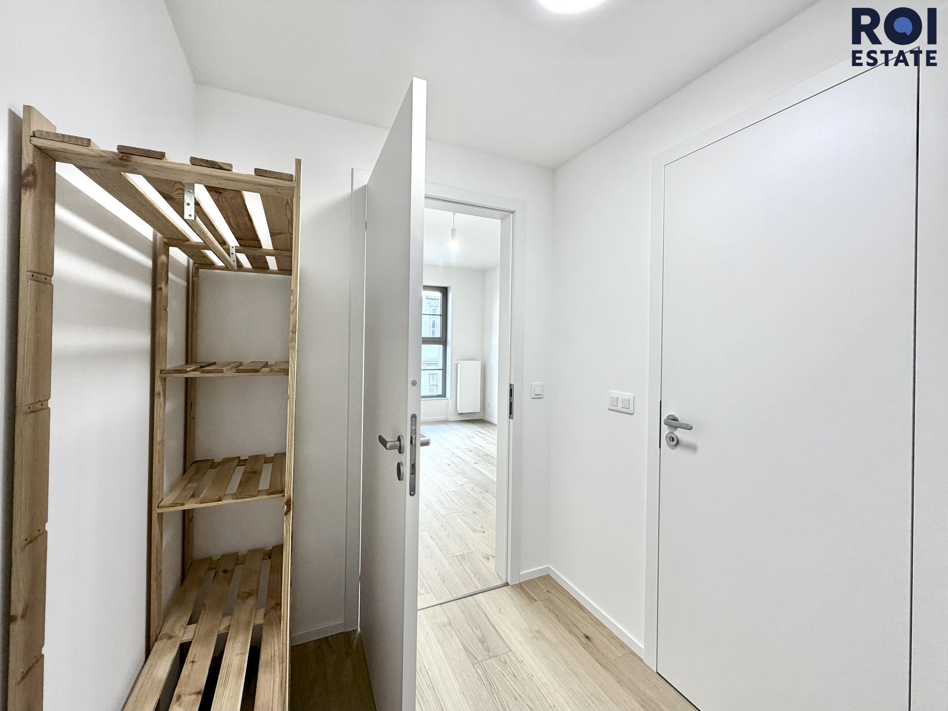 Hned u vstupu vás uvítá světlá předsíň, kde najdete stylový dřevěný policový regál, který skvěle poslouží pro uložení kabátů, bot nebo vašich oblíbených dekorací. Koupelna je pak skutečnou oázou elegance. Je obložená velkoformátovou dlažbou v dekoru kamene a nabízí prostorný sprchový kout se skleněnou zástěnou, designové umyvadlo a toaletu. Celý prostor doplňuje zrcadlo s integrovaným LED osvětlením a kvalitní dřevěná plovoucí podlaha, která celému ateliéru dodává útulnou atmosféru. Výhodou mlže být i to, že prostor je jinak nezařízený, což vám dává absolutní svobodu vytvořit si interiér snů přesně podle vašich potřeb.