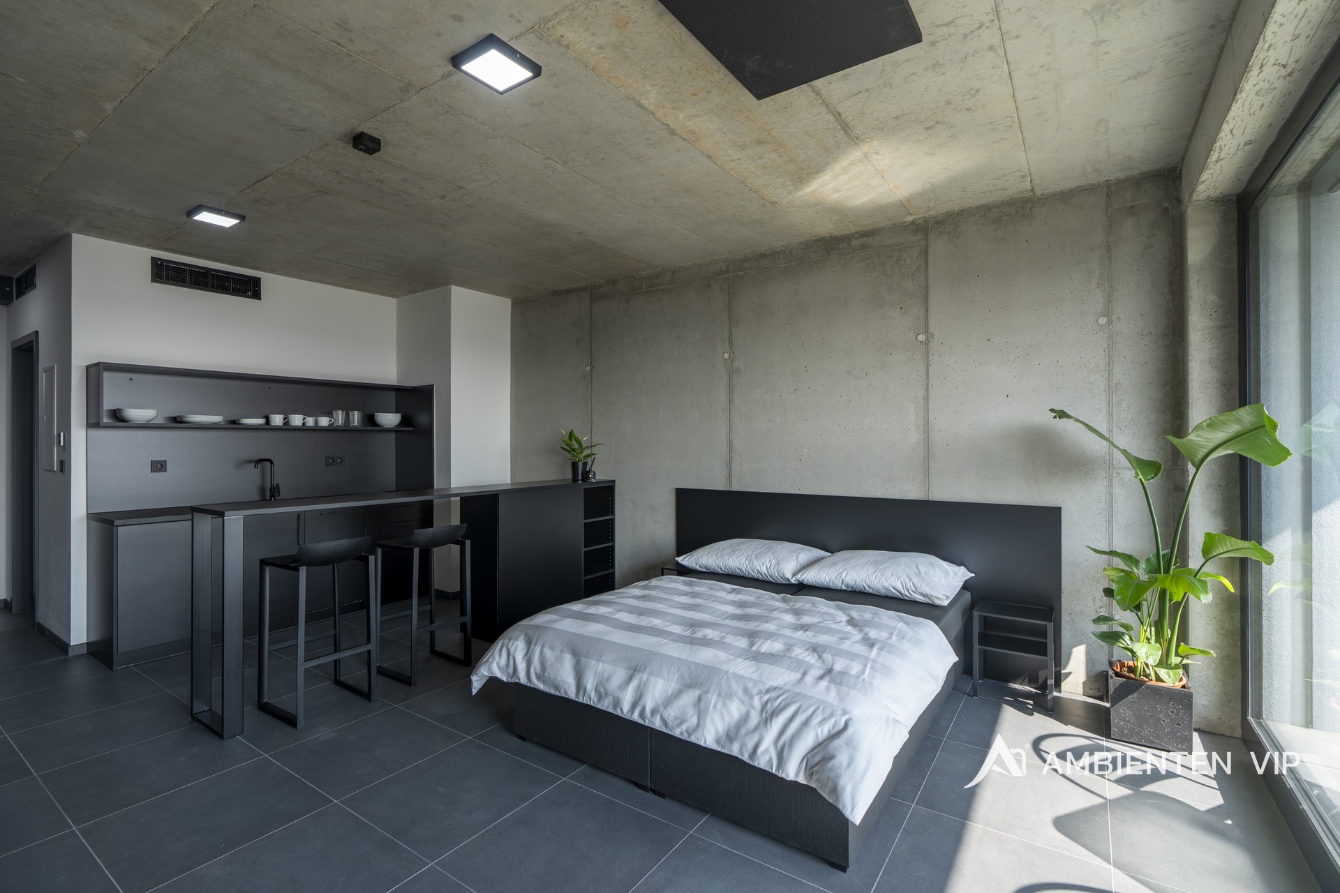 Standardem každé jednotky je plné vybavení zahrnující - postel o rozměru 160 × 200 cm a vestavěné úložné prvky, pracovní kout a barový pult, klimatizaci a venkovní žaluzie, systém chytré domácnosti Loxone, plně vybavenou kuchyň včetně myčky a nádobí. Celkový koncept vytváří harmonické a funkční prostředí ideální pro moderní městský život.