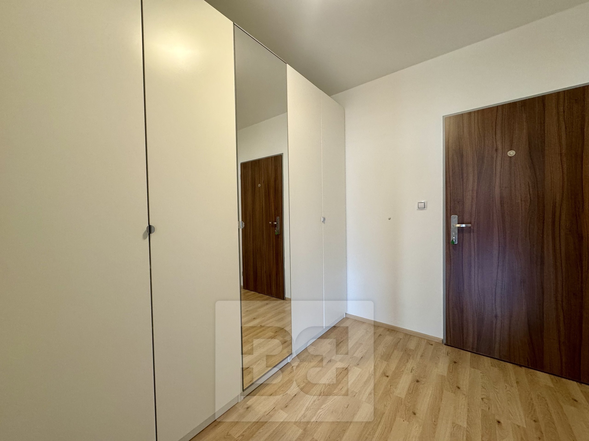 Byt nabízí prostornou předsíň s velkou šatní skříní, která poskytuje dostatek úložného prostoru. Na ni navazuje komfortní koupelna s vanou, umyvadlem, toaletou a přípojkou na pračku. Hlavní obytný prostor tvoří světlý pokoj s kuchyňským koutem, který je vybaven moderní kuchyňskou linkou včetně myčky nádobí. Z pokoje je vstup na příjemný balkon, ideální pro ranní kávu nebo odpočinek.
