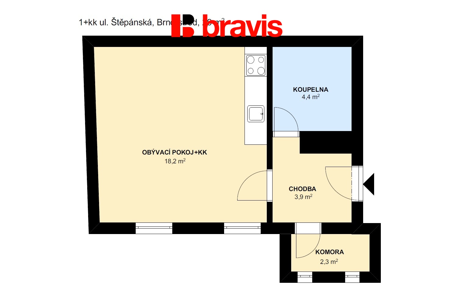 Dispozice bytu:1+kk
