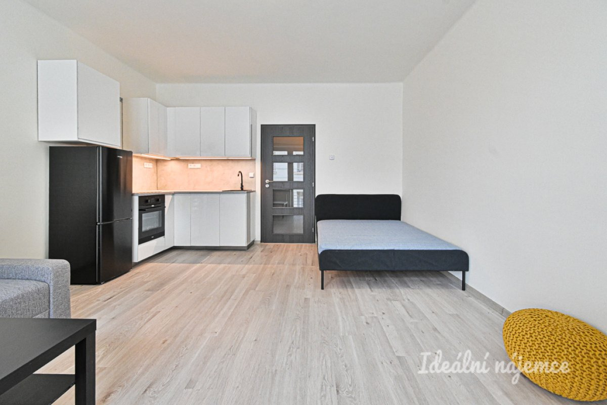 Byt je plně vybavený a připravený k okamžitému nastěhování. Kuchyně je vybavena lednicí, elektrickou troubou, indukční varnou deskou a myčkou. V obývací části najdete pohodlnou rozkládací pohovku, konferenční stůl, jídelní stůl se židlemi a postel.