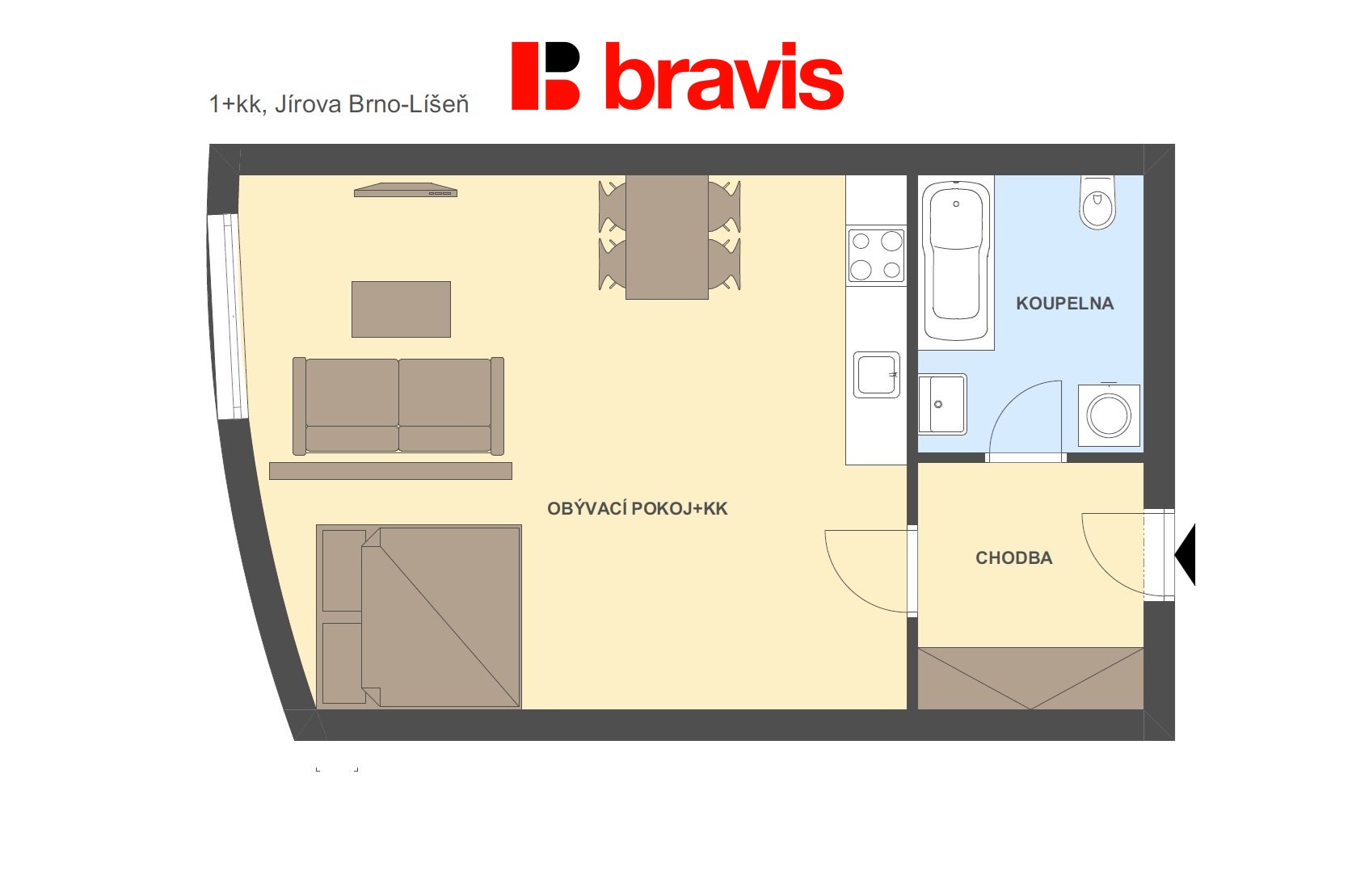Pronájem bytu 1+kk, ul. Jírová, Brno - Líšeň, zařízený, gar. parkovací stání, 40 m²