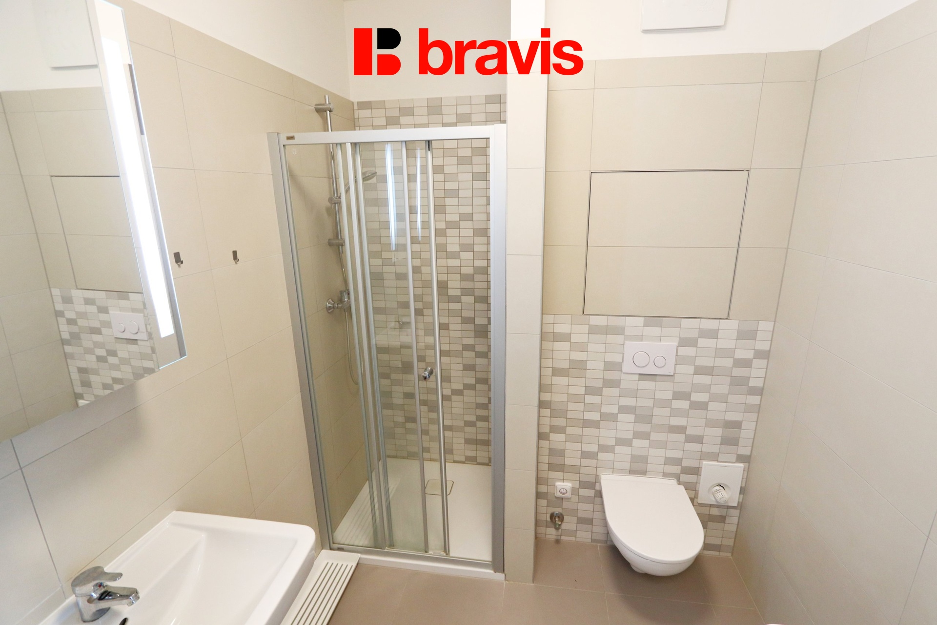 Koupelna (3,7 m2) je vybavena sprchovým koutem, umyvadlem s umyvadlovou skříňkou, toaletou, pračkou. Jednou z výhod tohoto bytu je podlahové vytápění v koupelně, které dodá vašim ranním rituálům a večernímu relaxu zcela nový rozměr pohodlí.