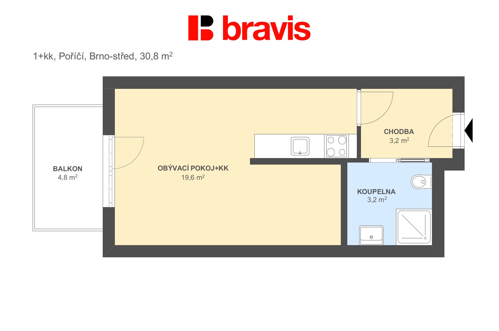 Dispozice bytu:1+kk
