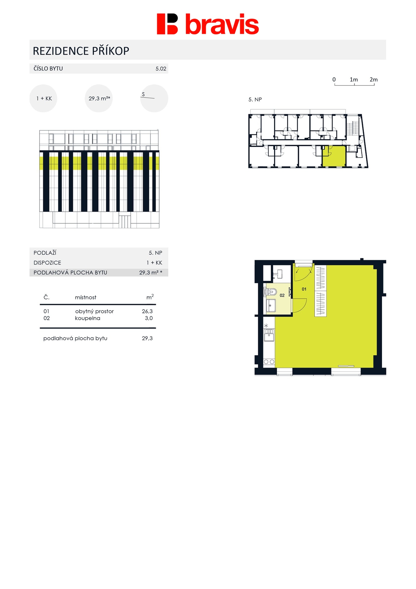 Byt o celkové ploše 30 m2 se nachází v 5 patře bytového domu s výtahem.