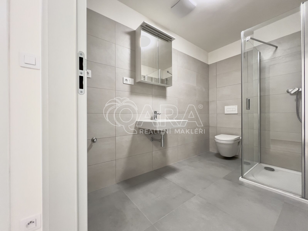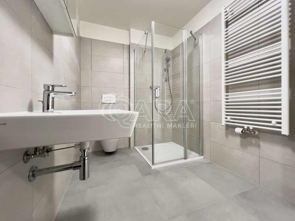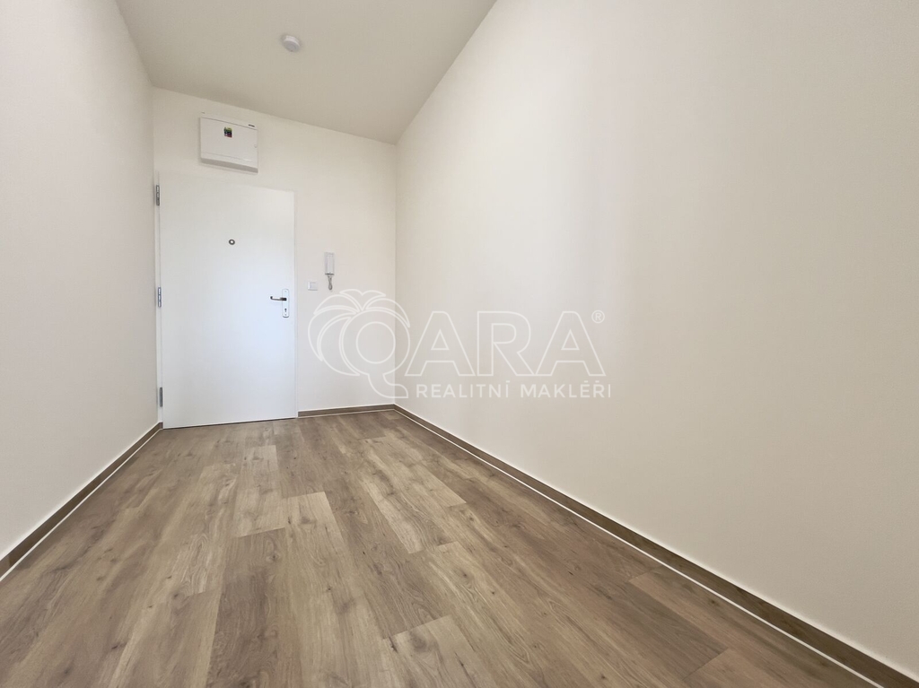 Bytová jednotka o výměře 37,1 m² se nachází ve 3. nadzemním podlaží novostavby z konce roku 2023 (dva výtahy jsou samozřejmostí). Byt se skládá z předsíně o výměře 6,9 m², ze které se dostaneme do obytné části o výměře 22,6 m², která je zařízena kuchyňskou linkou s elektrickou troubou, dvouplotýnkovou indukční varnou deskou a digestoří (další spotřebiče nebudou součástí nájmu). Z obytné části je přístupný balkon o výměře 3,2 m². Koupelna je přístupná z chodby a je vybavena sprchovým koutem, umyvadlem, skříňkou se zrcadlem a přípojkou na pračku. Dostatek místa na sušičku je samozřejmostí. WC je v koupelně. Byt se pronajímá jako nezařízený, tudíž si jej můžete vybavit podle svých vlastních představ. Garážové parkovací stání pro jedno auto (není podmínkou nájmu) je v 1. PP.