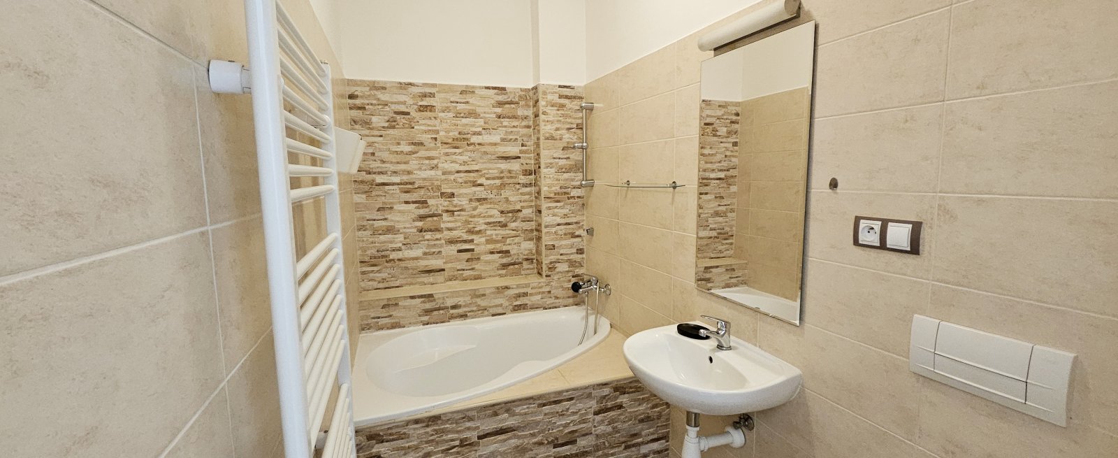 Dispozice: Malá kuchyňka, koupelna s vanou a toaletou dohromady, pokoj.