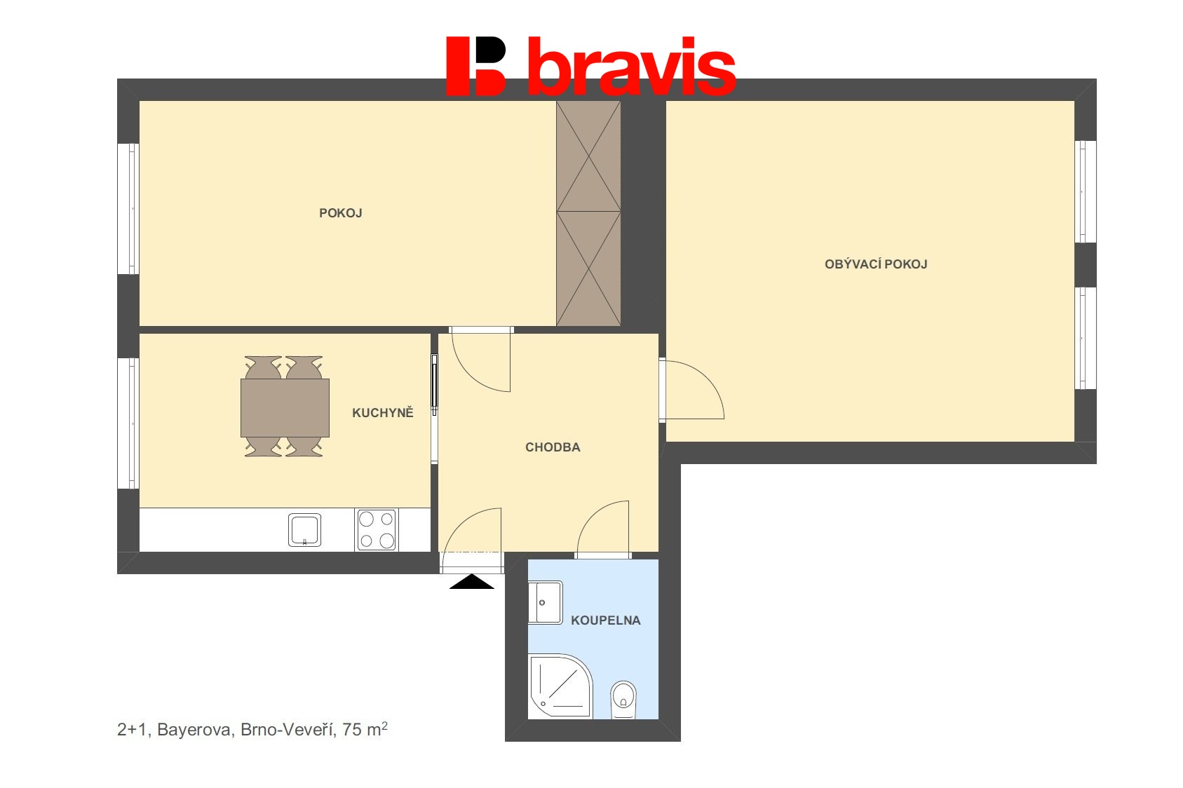 V zastoupení majitele nabízíme k pronájmu byt 2+1 na ulici Bayerova v Brně - střed.