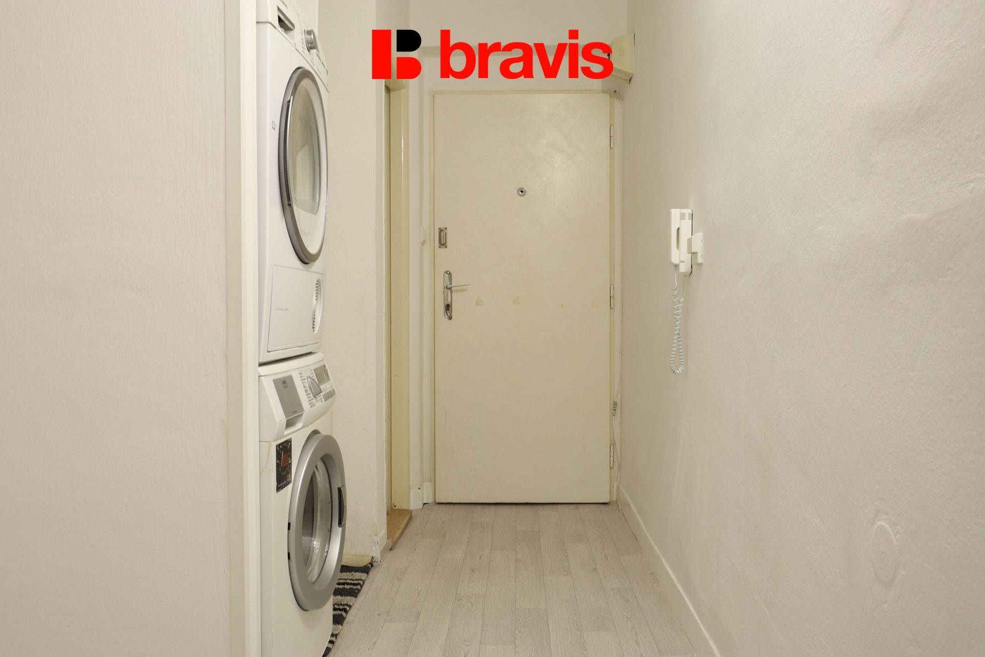 Na chodbě se nachází pračka se sušičkou, skříňka s úložným prostorem a vstup na samostatnou toaletu.