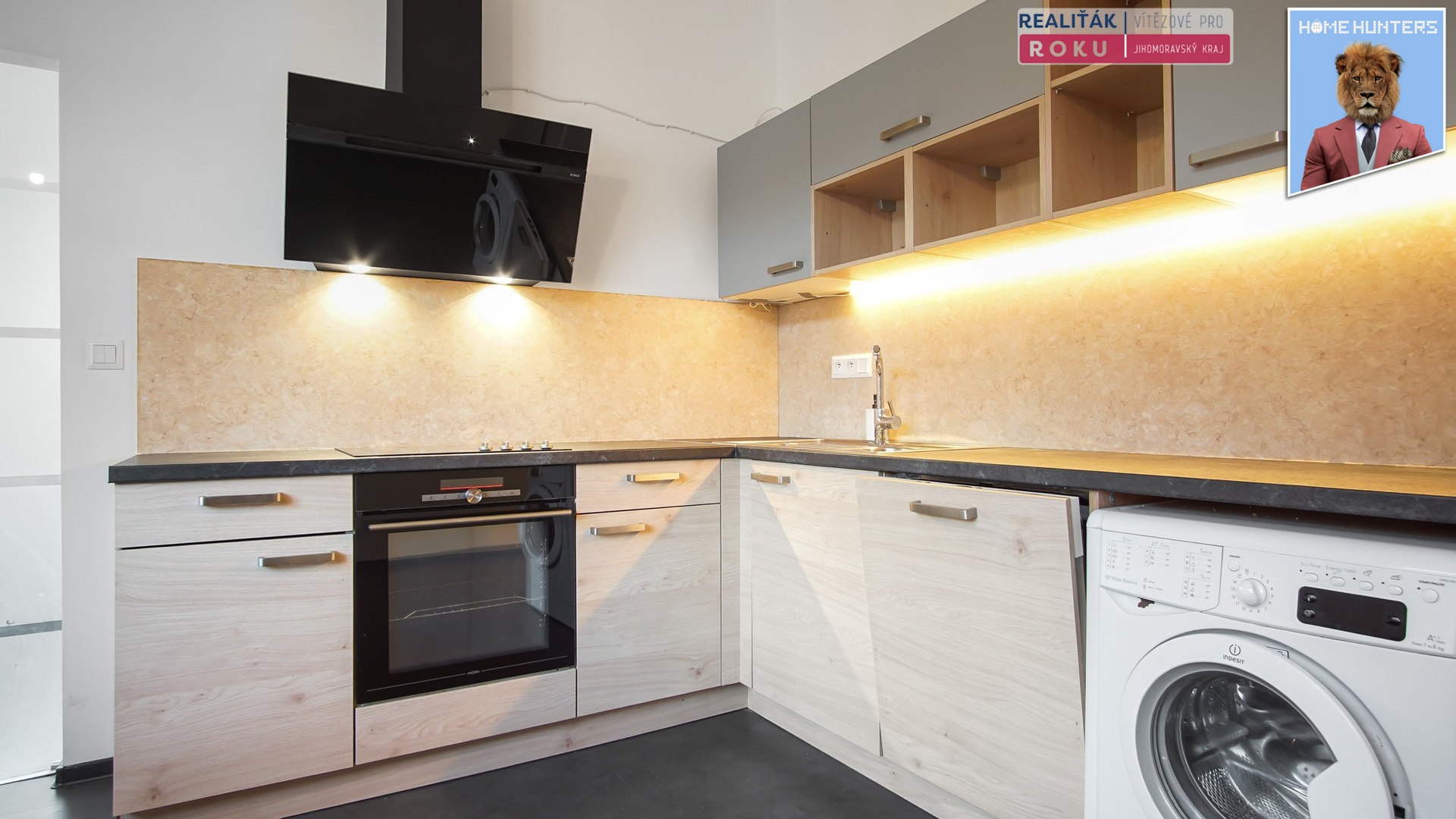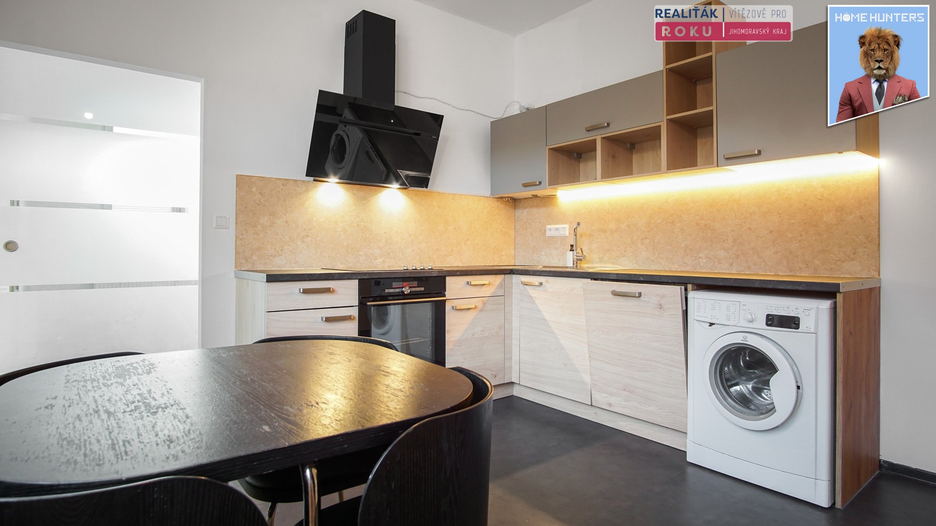 Dispozice bytu je praktická a vzdušná. Světlá kuchyně poskytuje dostatek prostoru pro každodenní život, navíc zde najdete vše podstatné - je vybavena lednicí, troubou se sporákem i myčkou nádobí. Navíc je možné díky rozložení přidat pracovní stůl či obytnou stěnu tak, aby vytvořila útulný prostor dle vašich představ.