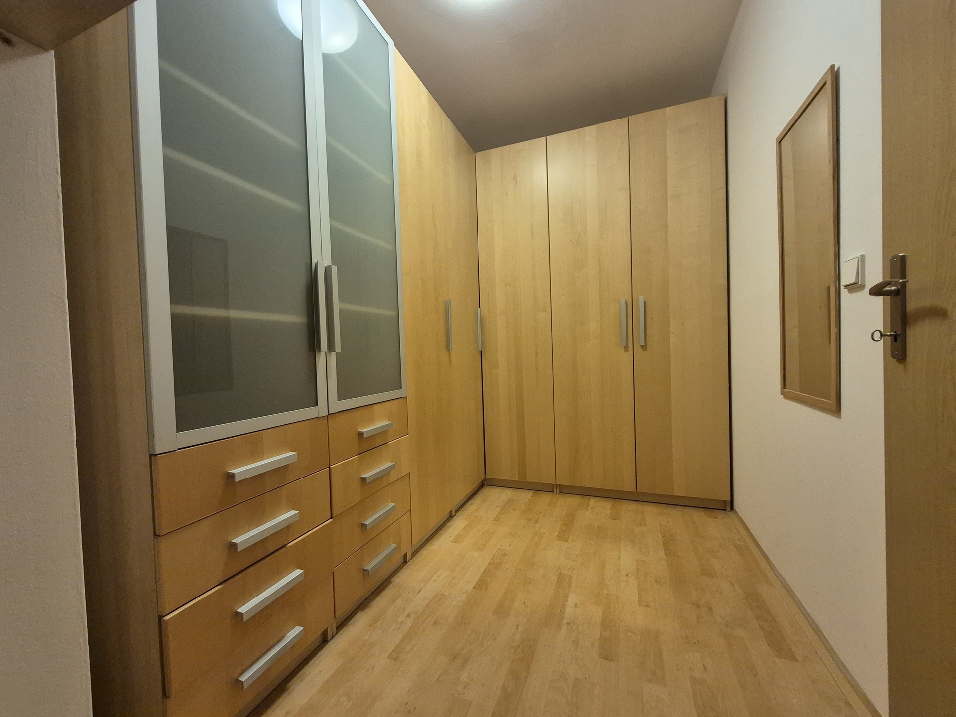 Byt se nabízí vč. vybavení, které vidíte na fotografiích. Výhodou je samostatná šatna – kompletně vybavena skříněmi.
