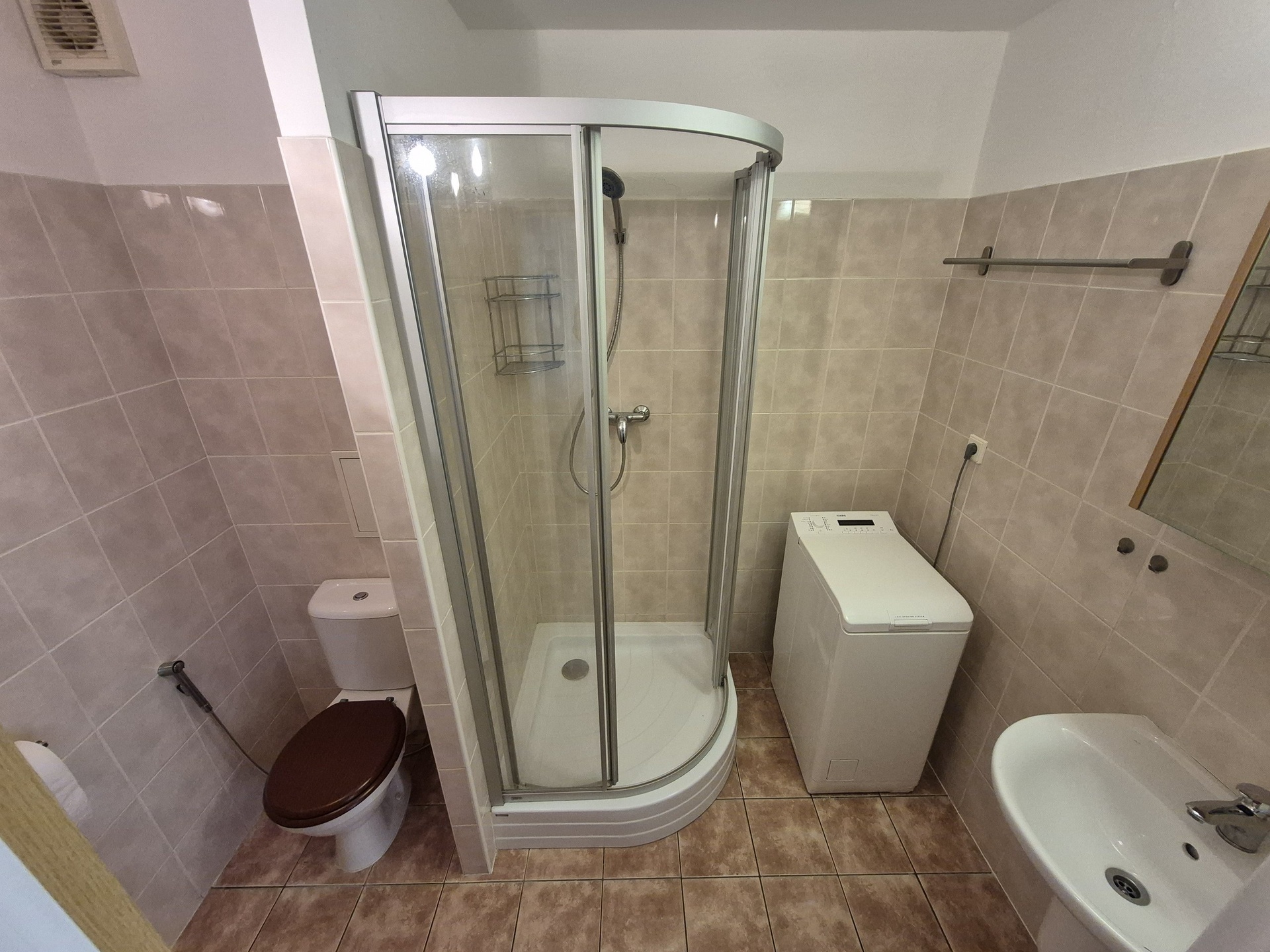 Vybavení jednotky: kuchyňská linka - součástí je varná deska, trouba, digestoř, lednice, myčka a osvětlení pracovní plochy, mikrovlnná trouba. Koupelna a wc jsou společné, v koupelně je sprchový kout, pračka, umyvadlo skříňkou a zrcadlem.