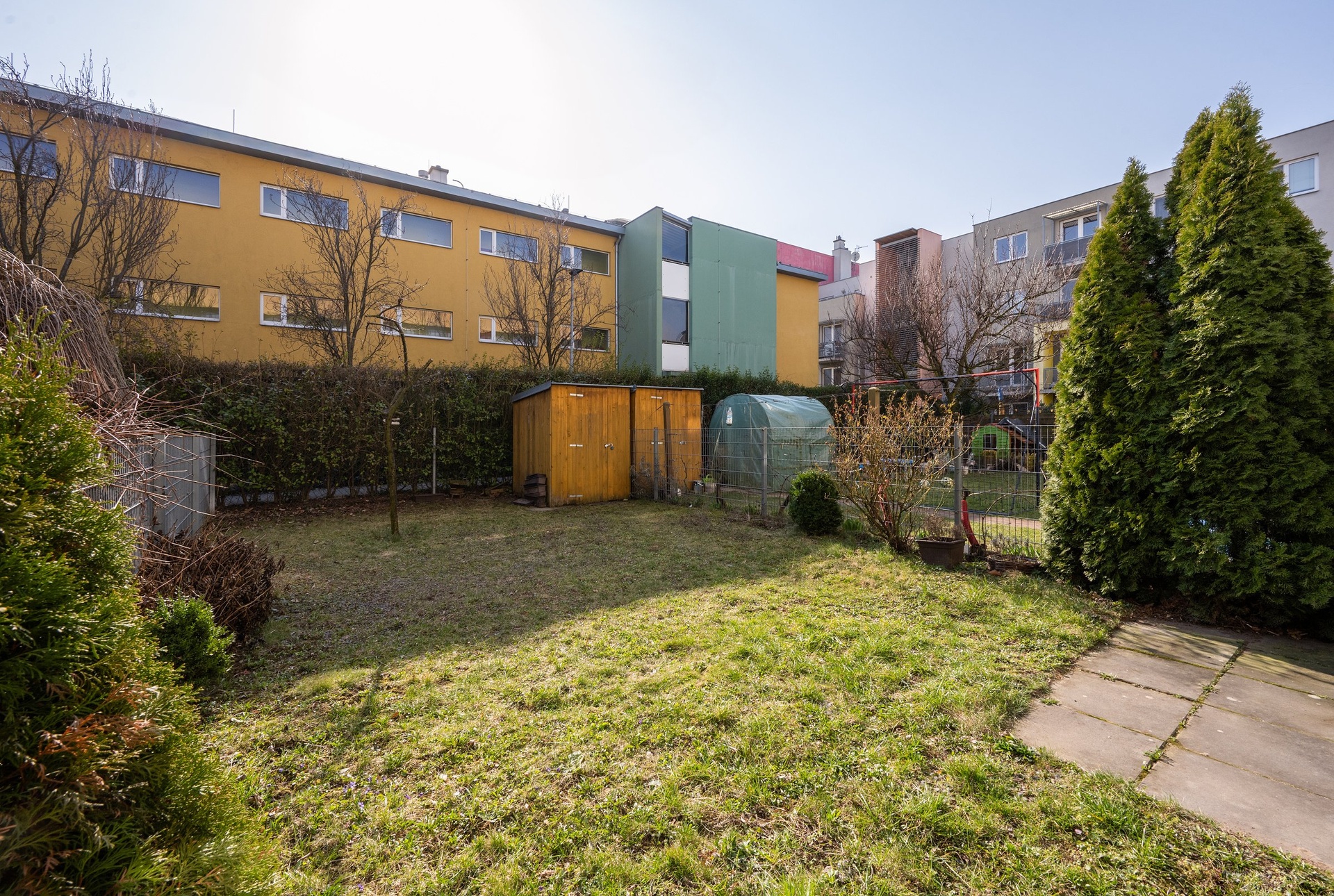Výměra bytu s jihovýchodní orientací je 44 m2. Zahrada má rozlohu 79 m2 včetně terasy. Na zahradě je malý zahradní domek, vybavený praktickými policemi.