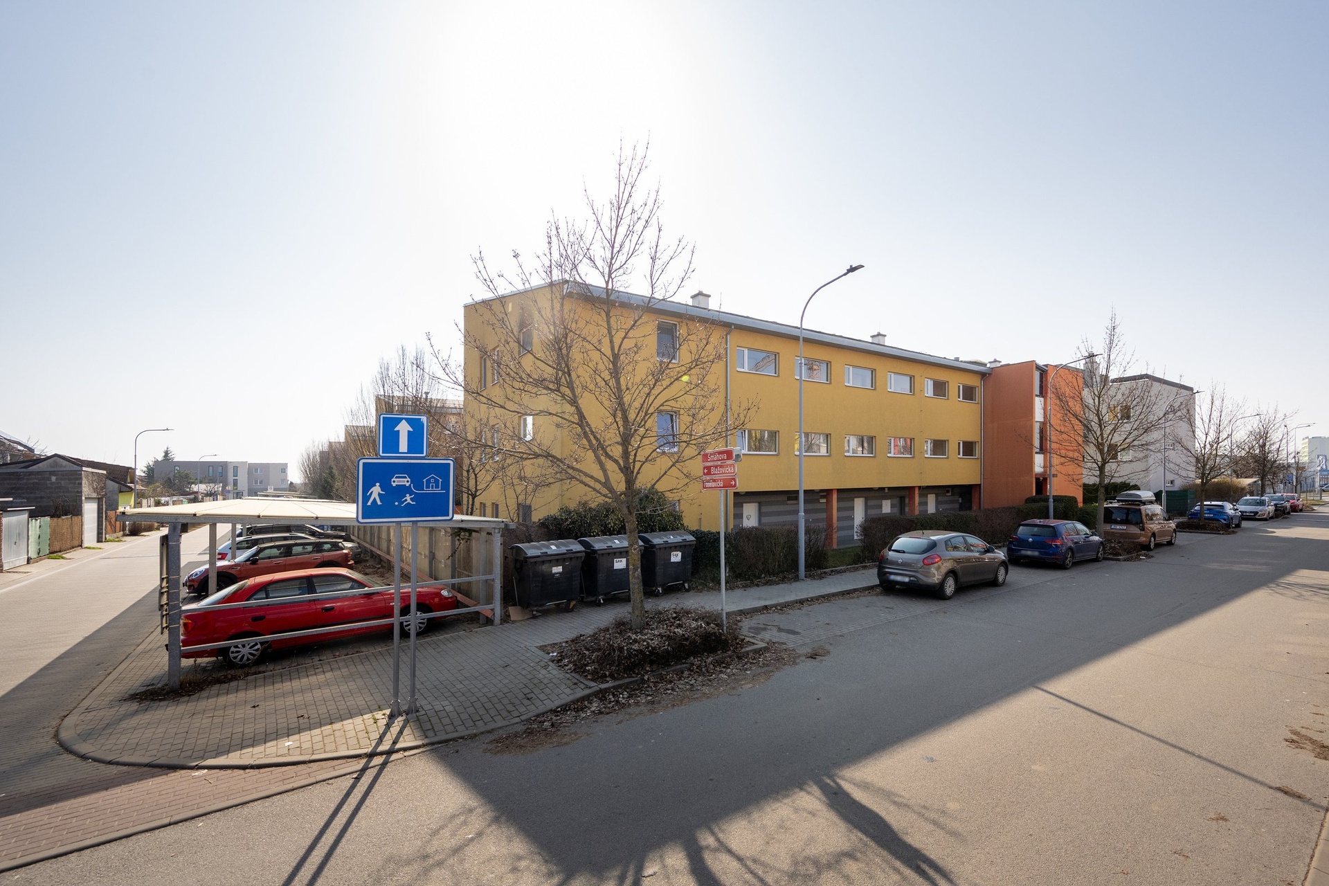 Byt se nachází v příjemné rodinné lokalitě v Brně Slatině na ulici Šmahova. Zahrada je otevřená do klidné části ulice. V blízkosti bytu je soukromé kryté parkovací stání.
