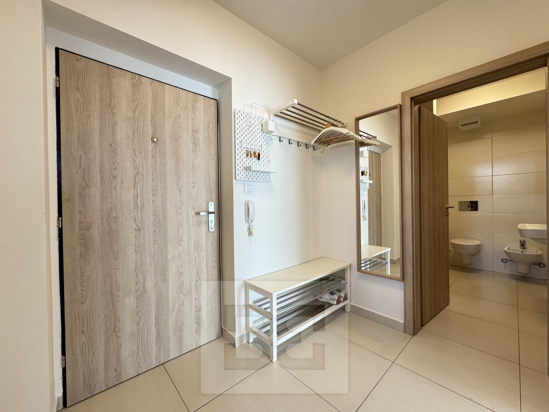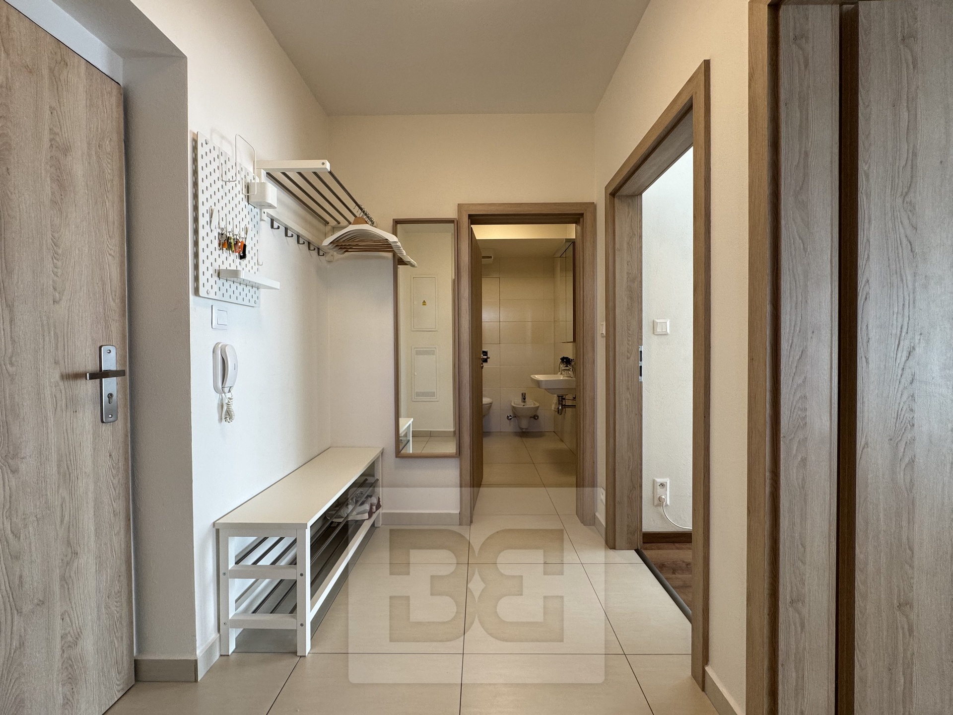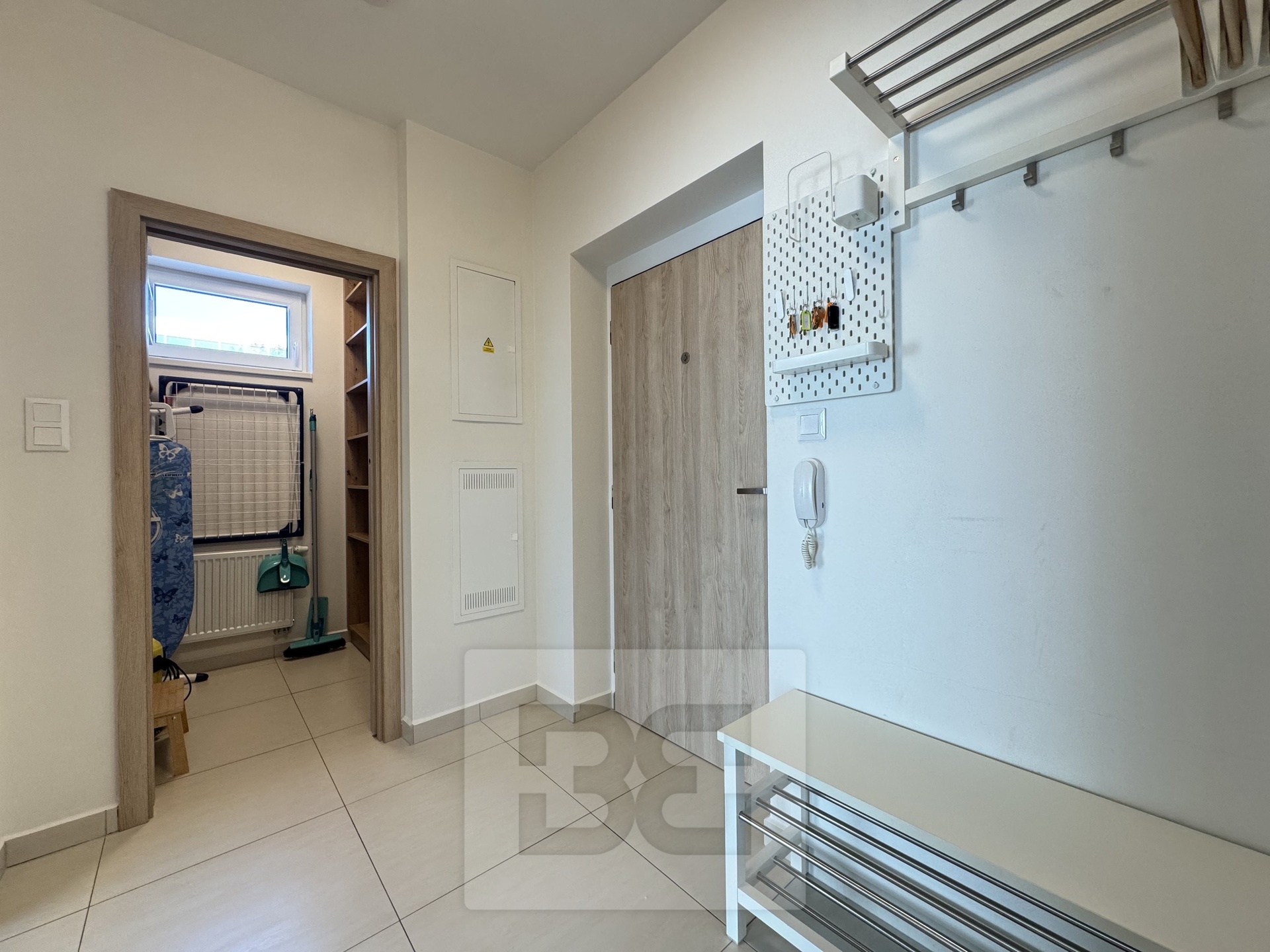 Velkým benefitem je praktická samostatná šatna a dostatek úložných prostor, což z bytu dělá velmi komfortní bydlení i pro pár.