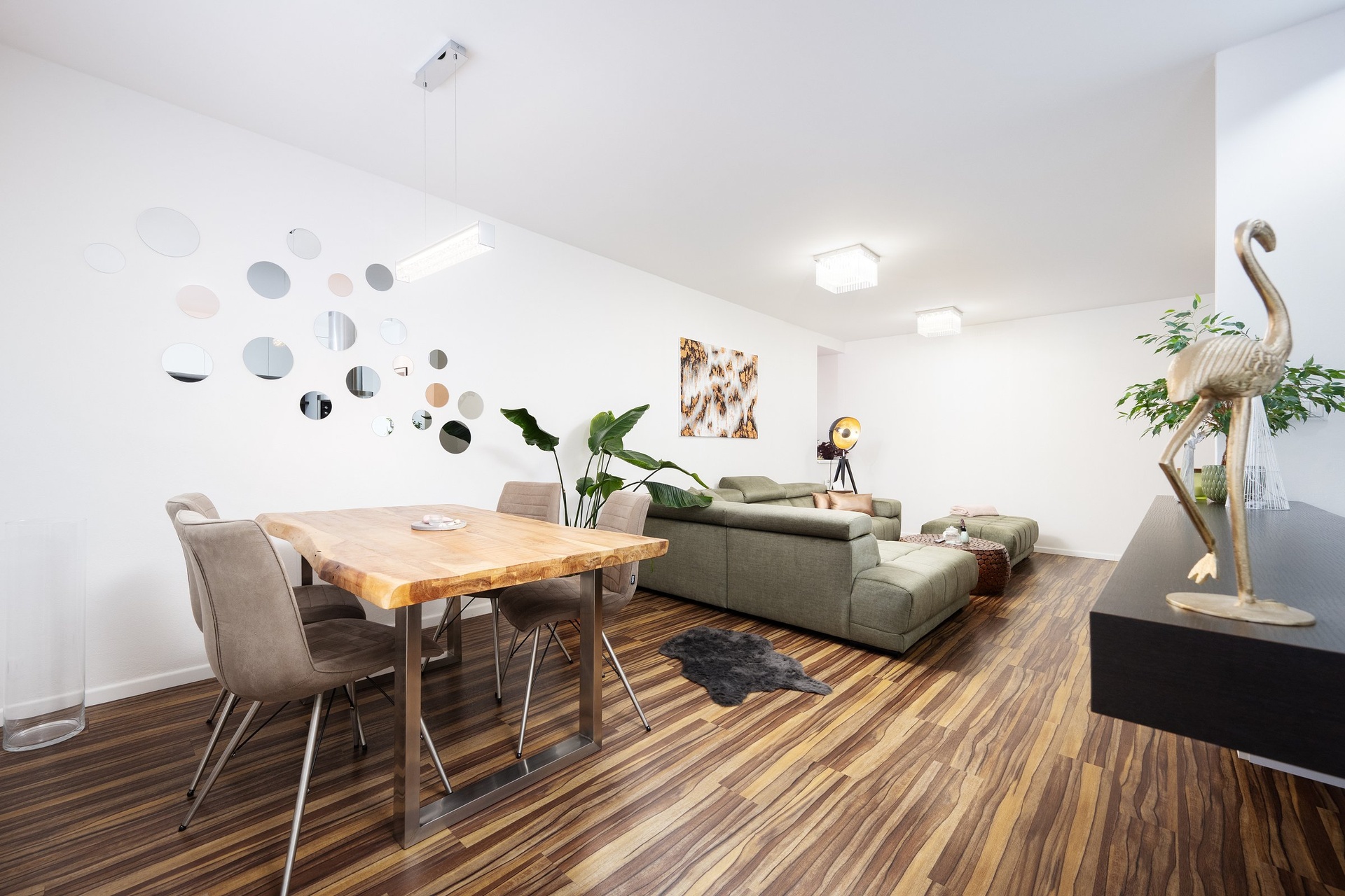 Dominantou prostorného, jižně orientovaného pokoje je krásná a plně vybavená kuchyně s praktickým členěním. Je zde lednice s mrazákem, mikrovlnná a horkovzdušná trouba, myčka, sklokeramická varná deska a digestoř.