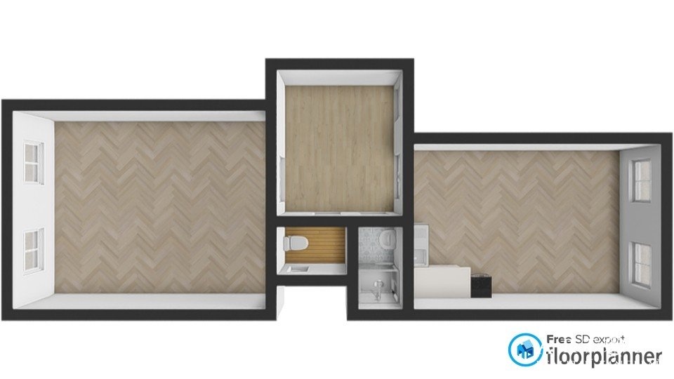 Kuchyň bude vybavena jednoduchou kuchyňskou linkou s volně stojícím sporákem. Jinak bude nezařízený - bez nábytku a vybavení.