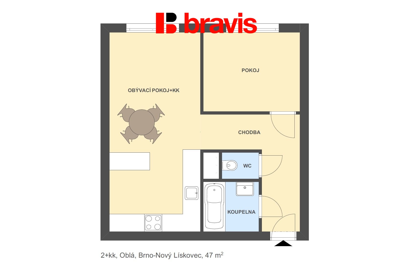 Pronájem bytu 2+kk, Brno - Nový Lískovec, ulice Oblá, zrekonstruovaný, částečně vybavený, sklep