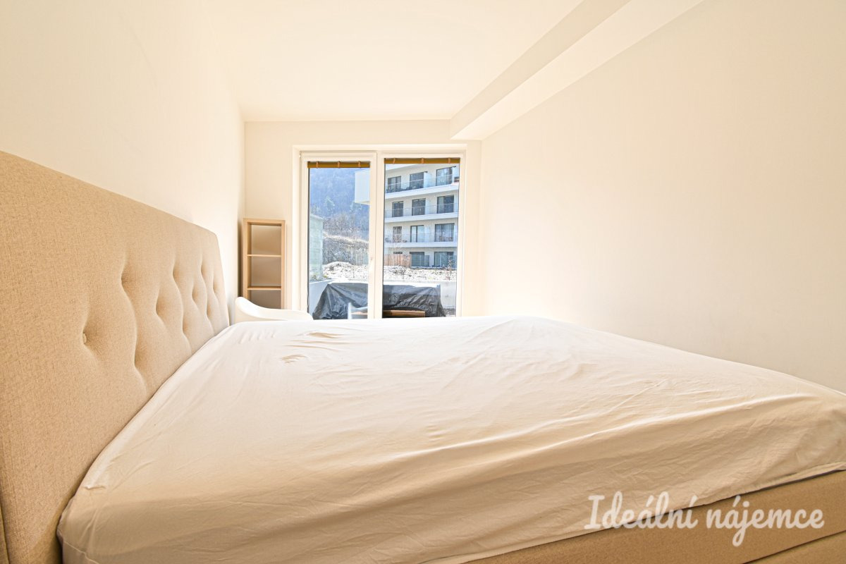 Byt se nabízí vybavený dle fotografií. Kuchyně disponuje lednicí, myčkou, elektrickou troubou, varnou deskou a digestoří. Obývací část je propojena s kuchyní a nabízí dostatek prostoru pro pohodlné bydlení i odpočinek. Ložnice je vybavena postelí a úložným prostorem. V koupelně najdeme sprchový kout, umyvadlo a toaletu, k dispozici je také pračka.