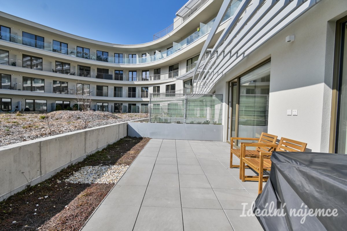 K dlouhodobému podnájmu nabízíme byt o dispozici 2+kk v oblíbené lokalitě Brno – Komín. Byt o celkové výměře 57 m² se nachází v 1. podlaží moderního domu s výtahem. K bytu náleží prostorná terasa, která nabízí příjemné posezení s výhledem do okolí.