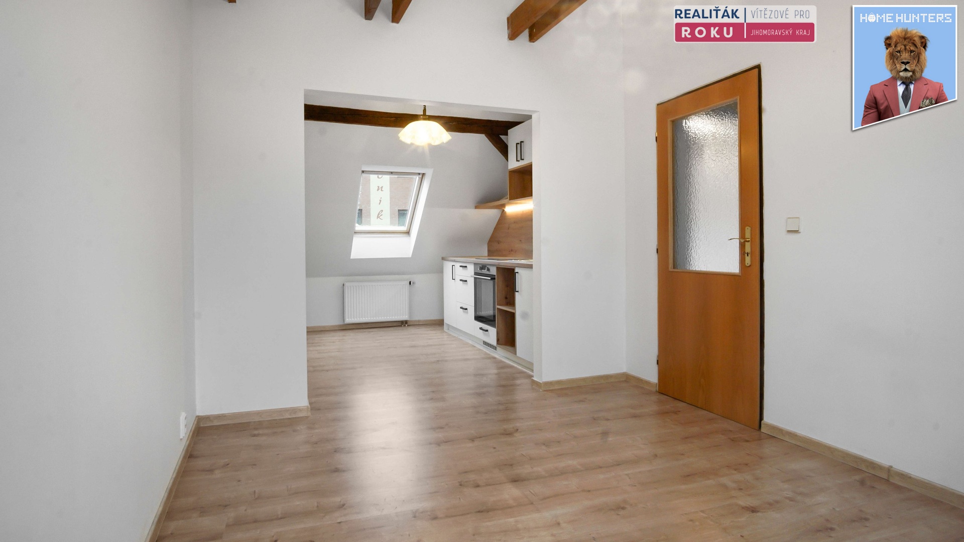 Podkrovní charakter bytu mu dodává příjemnou atmosféru a současně zajišťuje dostatek denního světla díky střešním oknům. Byt má příjemnou vstupní chodbu, která navazuje na jednotlivé místnosti. Hlavní obytná část je řešena tak, aby se sem pohodlně vešel jídelní stůl i sedací souprava. Kuchyň je ve velmi pěkném stavu a je prakticky řešená, přičemž je již vybavena spotřebiči. Samostatný pokoj je velmi světlý díky střešnímu oknu. Prostor je dobře využitelný na ložnici i pracovnu. Praktickým benefitem je oddělené WC mimo koupelnu.