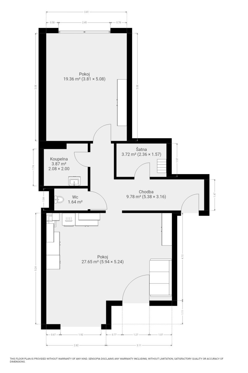 Byt se nabízí vybavený dle fotografií. Součástí je nová kuchyňská linka vybavená elektrickou troubou, varnou deskou, myčkou a digestoří. Koupelna je světlá a disponuje sprchovým koutem a umyvadlem, toaleta je oddělena. V bytě se nacházejí dvě velké místnosti s dostatkem denního světla. Komfort bydlení zvyšuje také podlahové vytápění.