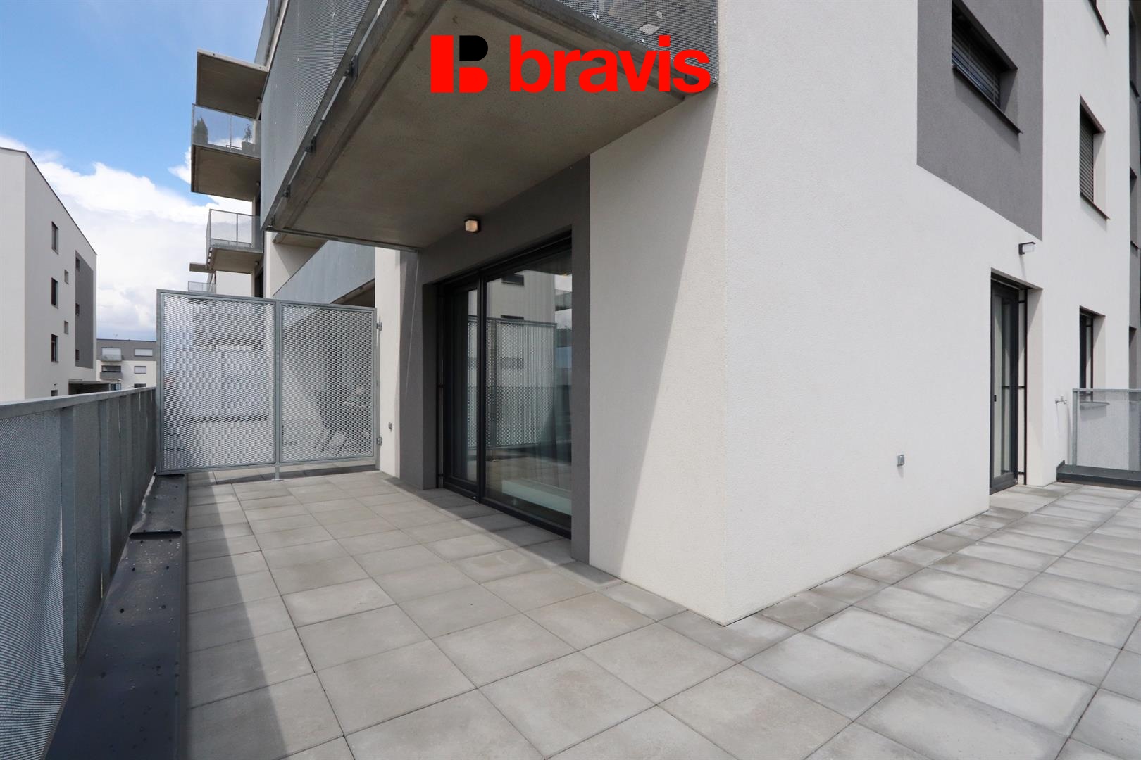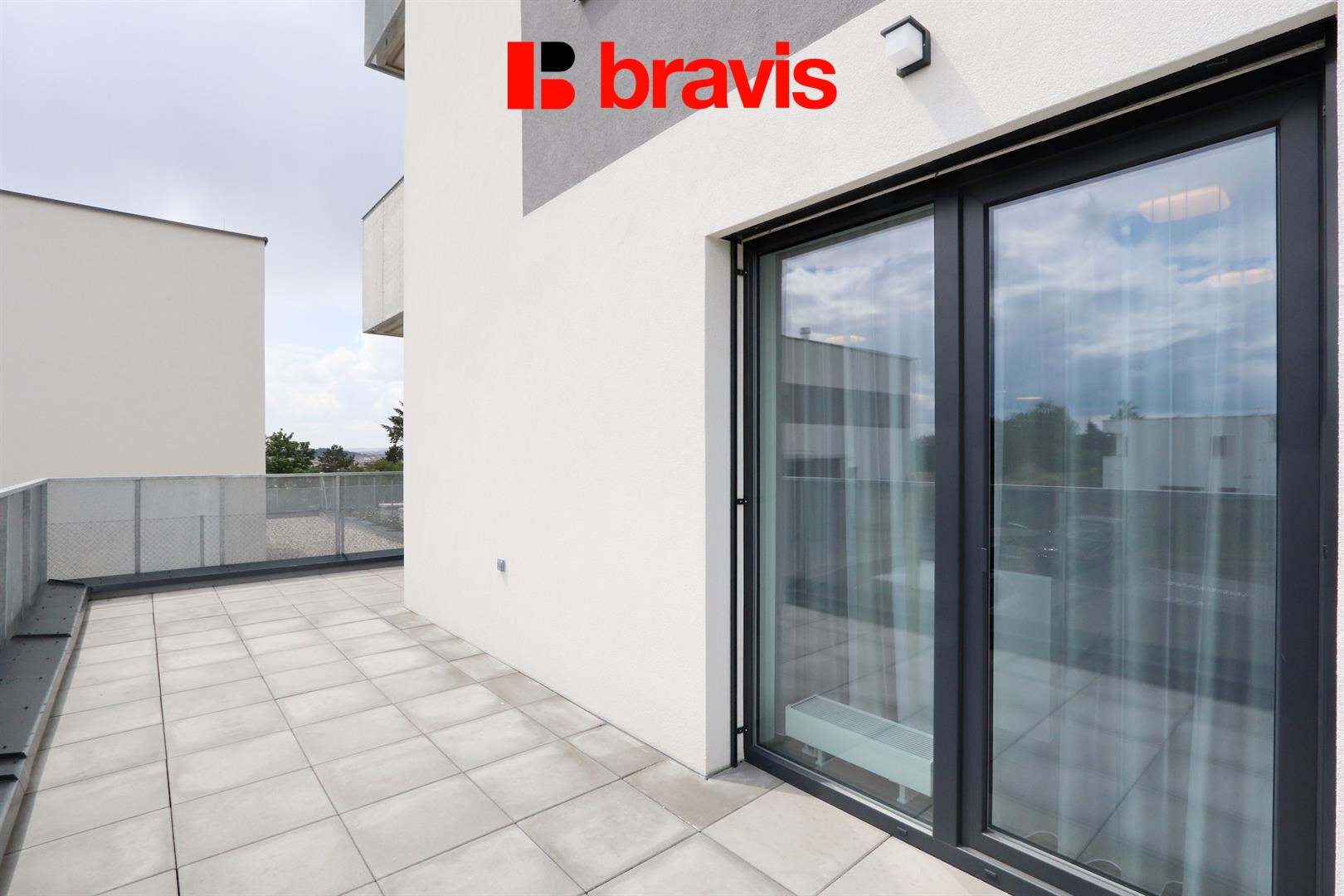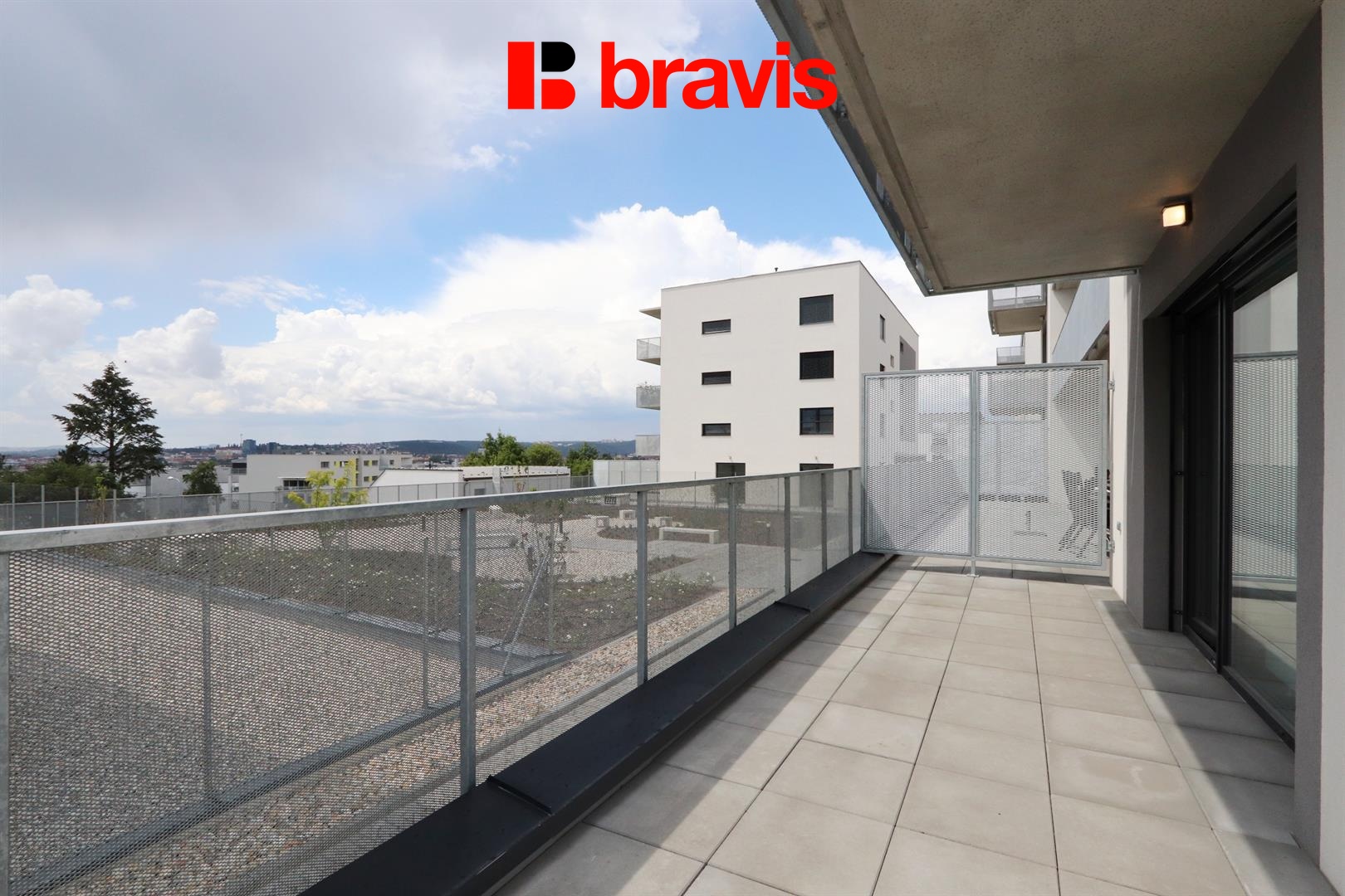 • Terasa (34,5 m²) je orientovaná na východní a jižní stranu, s výhledy na brněnské dominanty hrad Špilberk a Petrov, tak i do společné okrasné zahrady kolem bytového domu. Terasa je ideálním prostorem pro odpočinek, grilování nebo práci z domova.