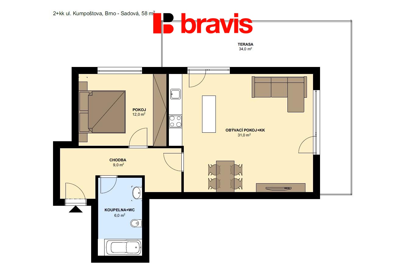 Dispozice bytu:2+kk