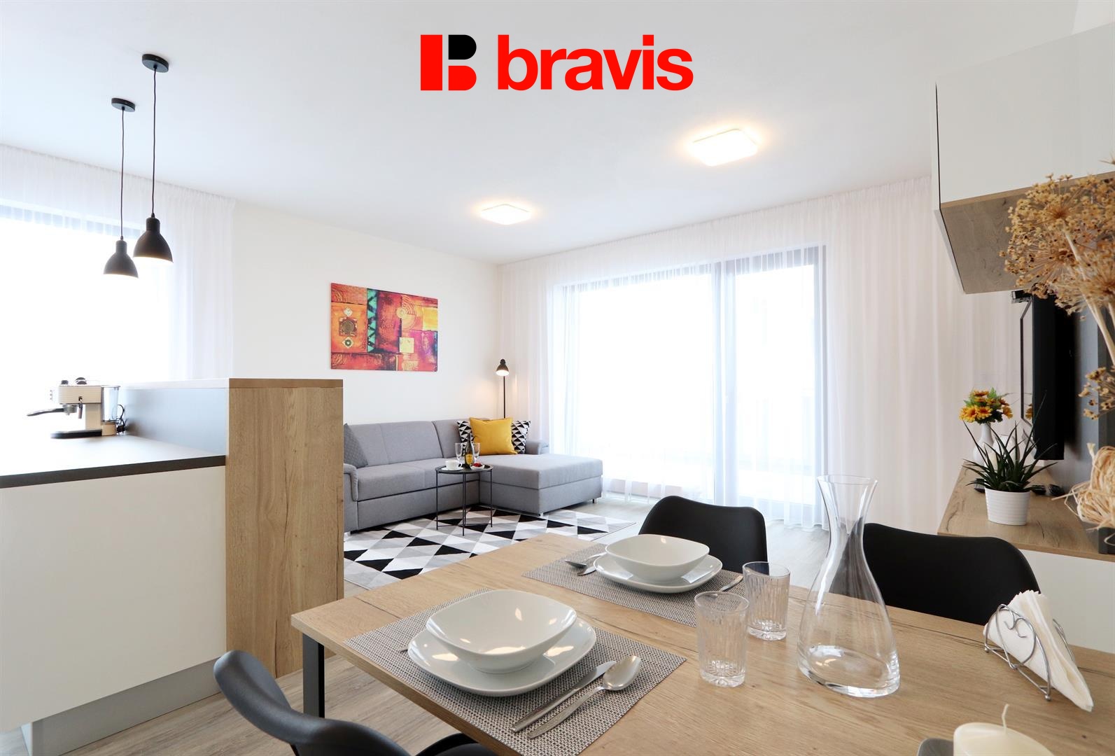 Nabízí se jako kompletně vybavený, zařízený moderním nábytkem na míru s dostatkem úložného prostoru. Interiér byl navržen s důrazem na funkčnost a design. Díky své východní a jižní orientaci je byt prosluněný po celý den.