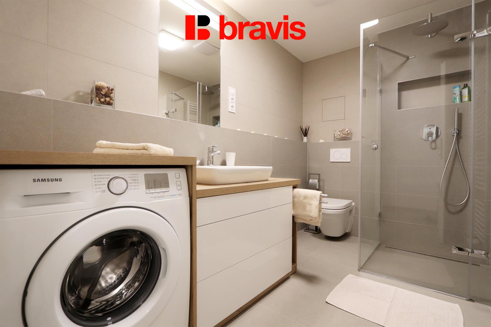 • zabudovaná pračka značky Samsung a prostor pro sušičku