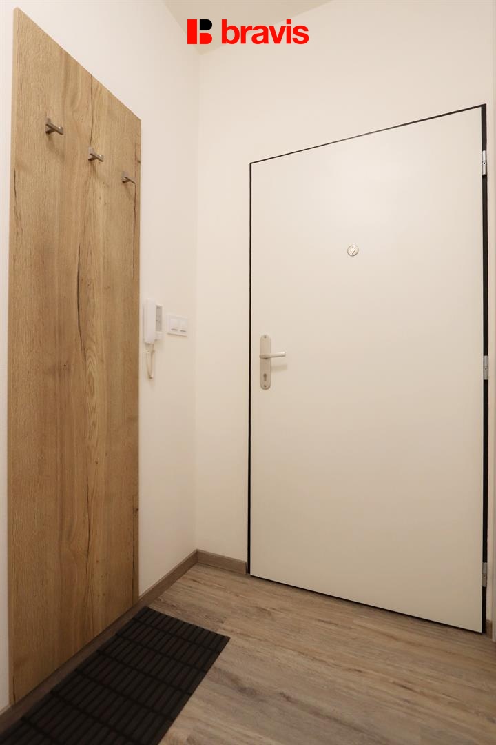 Pronájem bytu 2+kk, ulice Kumpoštova, Brno-Sadová, zařízený, výtah, velká terasa, sklep, garážové st