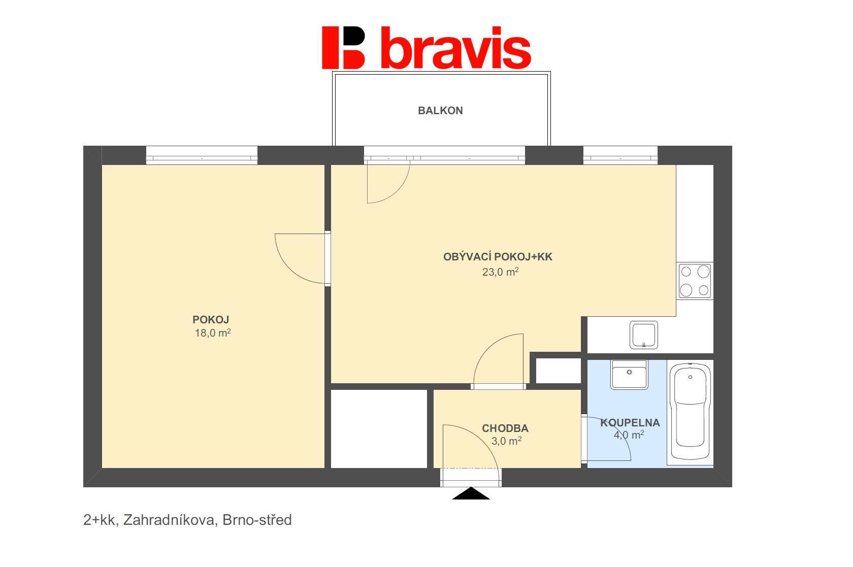 Ve výhradním zastoupení majitele nabízíme pronájem bytu 2+kk v Brně na ul. Zahradníkova. Byt o celkové ploše 48 m2 s balkonem, který je orientovaný do vnitrobloku, se nachází ve 4. patře cihlového domu s výtahem.