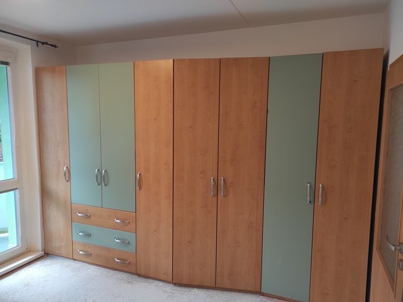 Novému uživateli bytu zůstává k dispozici kuchyňská linka vč. spotřebičů (lednice kombinovaná s mrazícím boxem, sporák, elektrická pečící trouba, myčka nádobí...), úložné skříně v pokoji a předsíni, nábytek v obývacím pokoji - vše na přiložených fotografiích bytu.