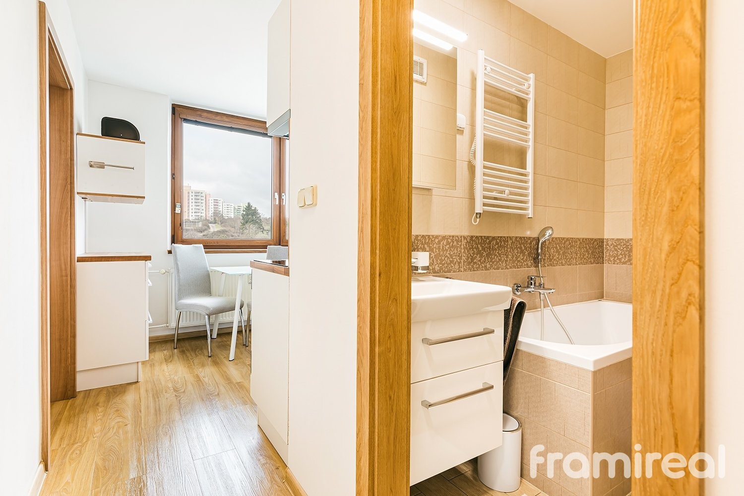 Byt se nachází v 8. patře domu s výtahem a díky západní orientaci je velmi světlý a příjemný.