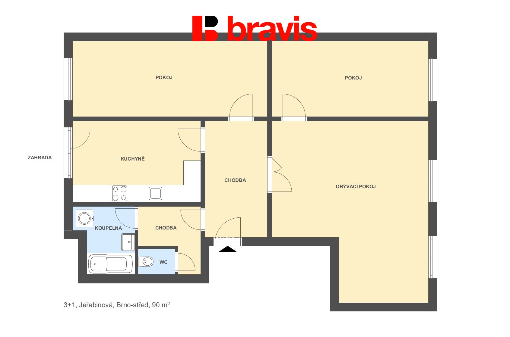 Nabízíme k pronájmu světlý a prostorný byt o dispozici 3+1 a výměře 90 m², který se nachází v 1. podlaží rodinného domu na prestižní adrese Jeřabinová, Masarykova čtvrť.