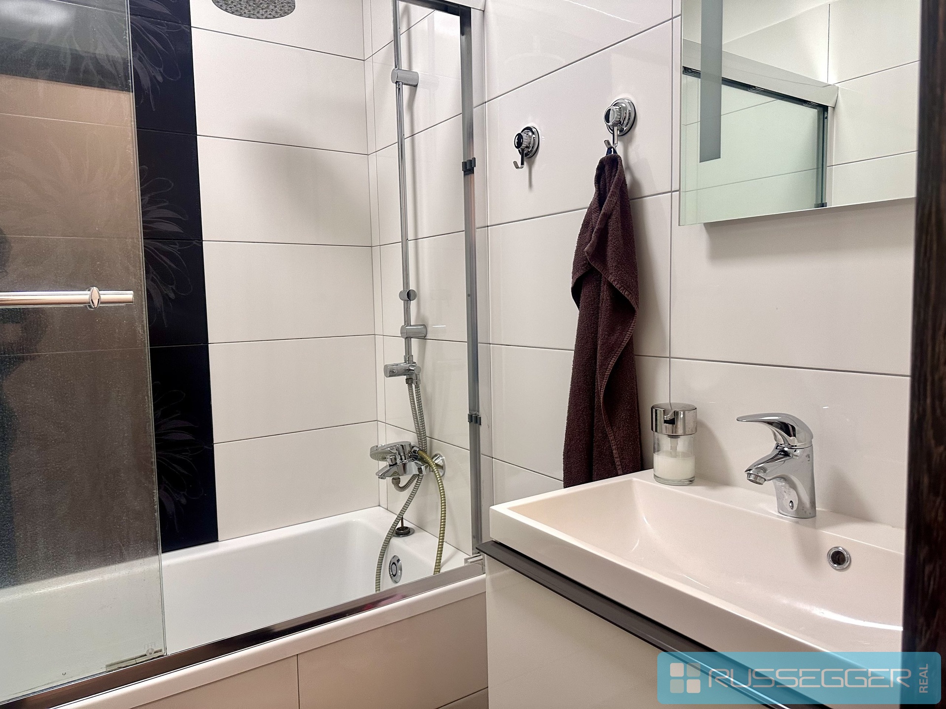Dispozice bytu je velmi praktická – neprůchozí pokoje zajišťují dostatek soukromí a byt je ve velmi dobrém technickém stavu. Kuchyňská linka je plně vybavena indukční varnou deskou, elektrickou troubou, digestoří, myčkou a lednicí s mrazákem. Koupelna je oddělena od toalety a disponuje vanou s pevnou posuvnou zástěnou, kterou lze využít i jako sprchový kout. Součástí vybavení je také pračka se sušičkou.