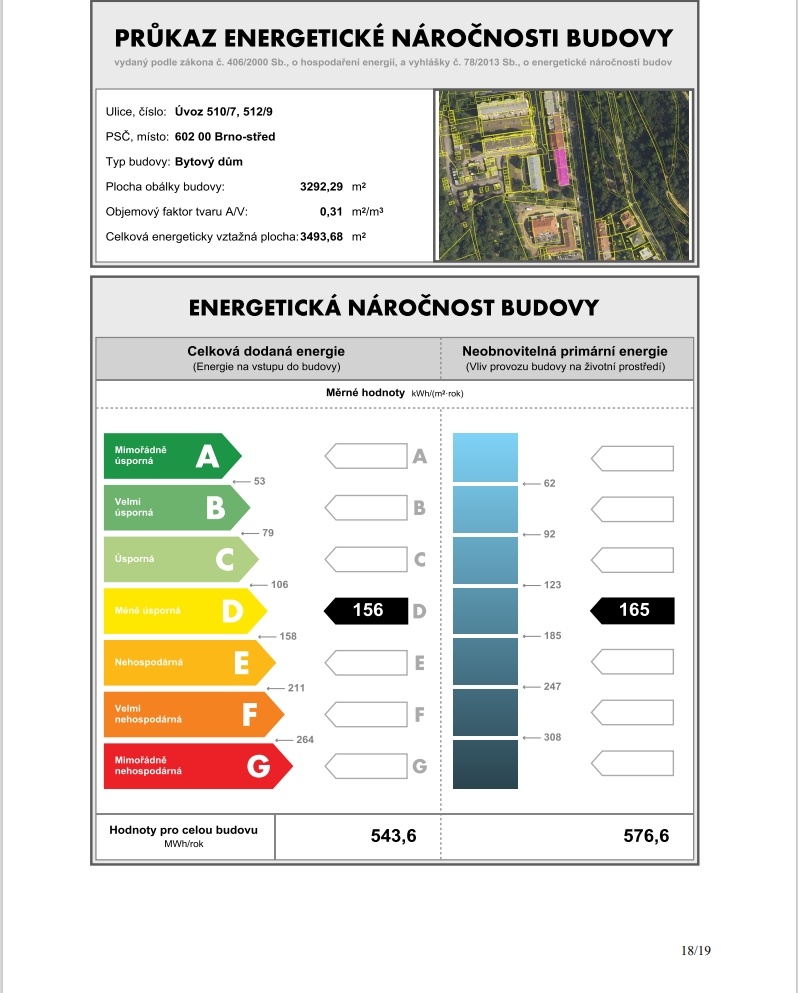 Ukazatel energetické náročnosti budovy:156 kWh/m²
