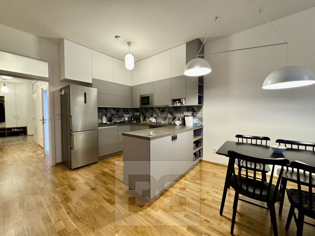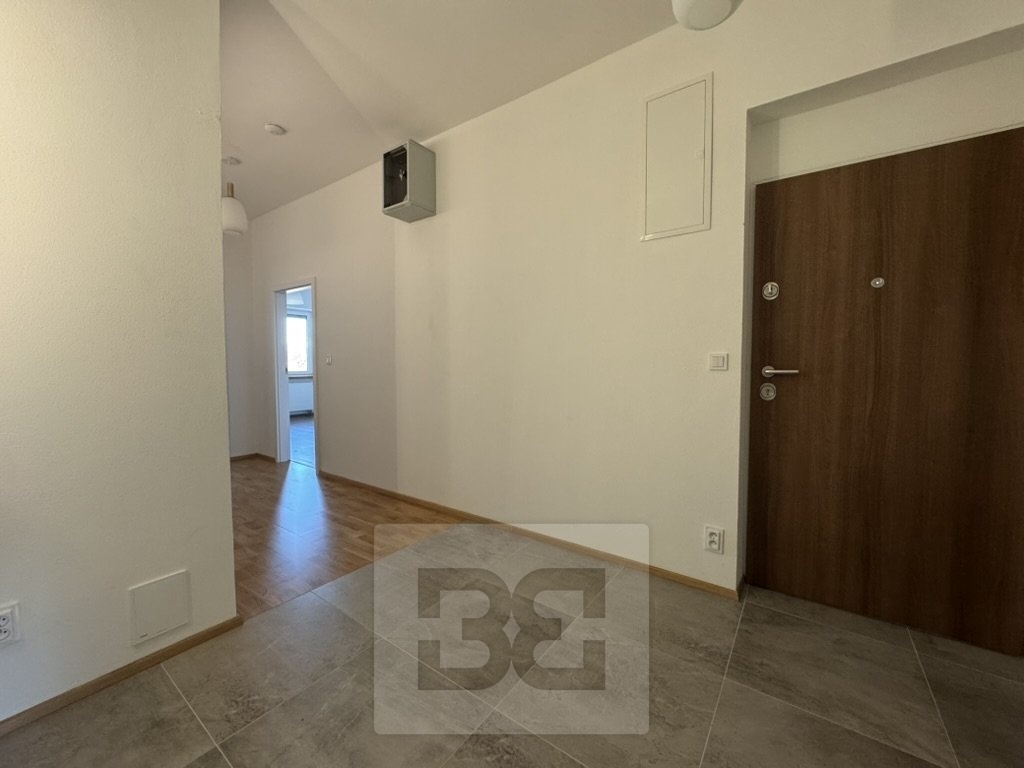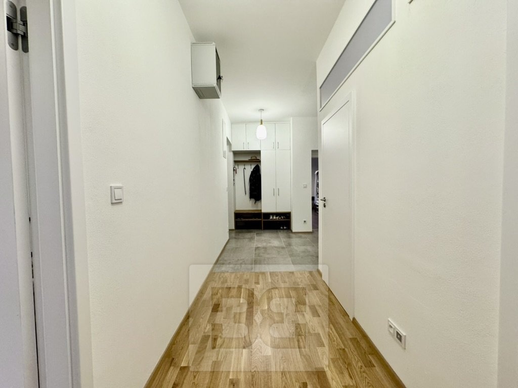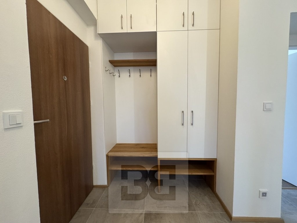 Byt prošel kompletní rekonstrukcí před dvěma lety – nové podlahy, moderní koupelna s vanou, samostatné WC a promyšlené úložné prostory v předsíni včetně elegantně skryté pračky.
