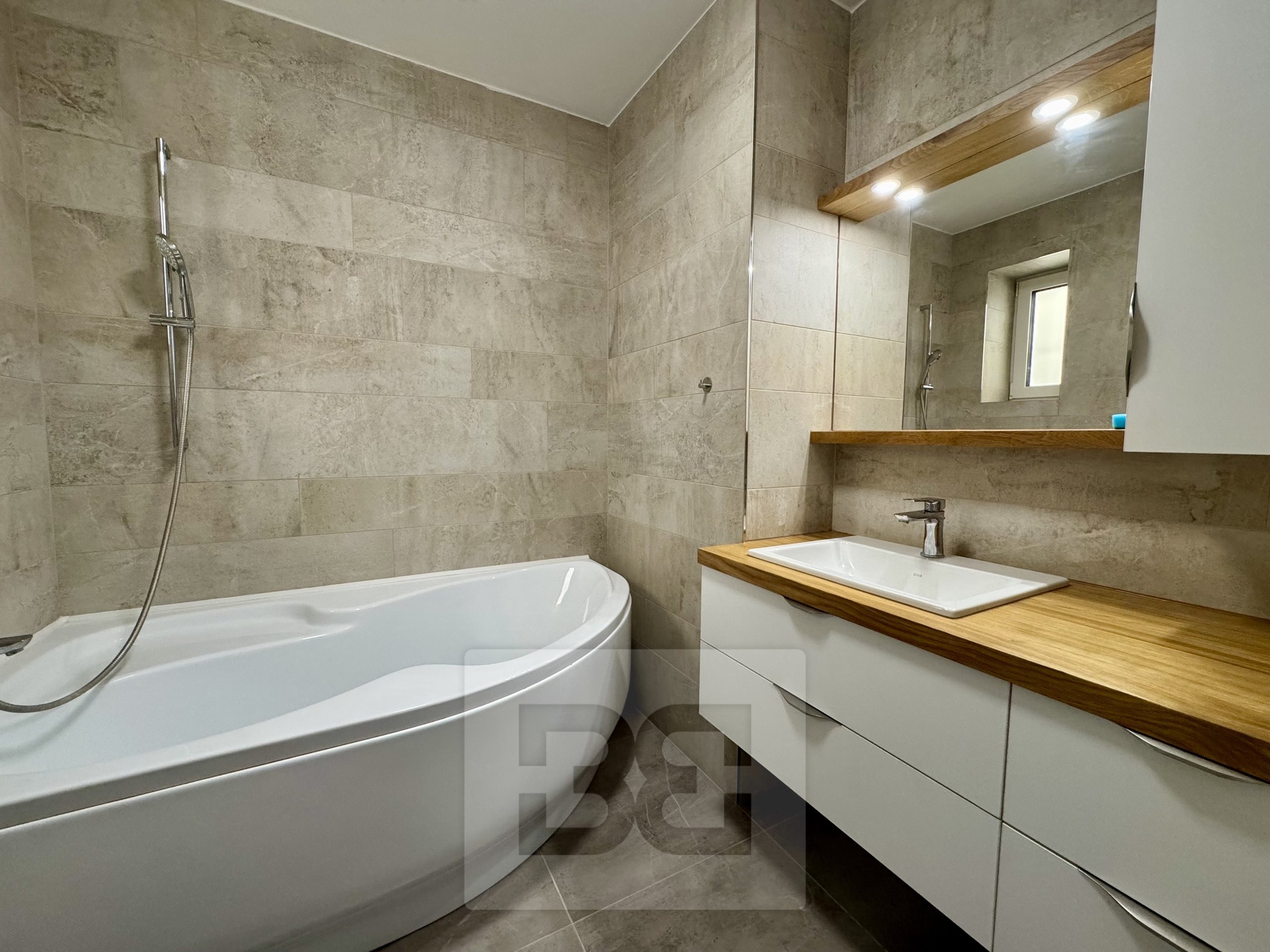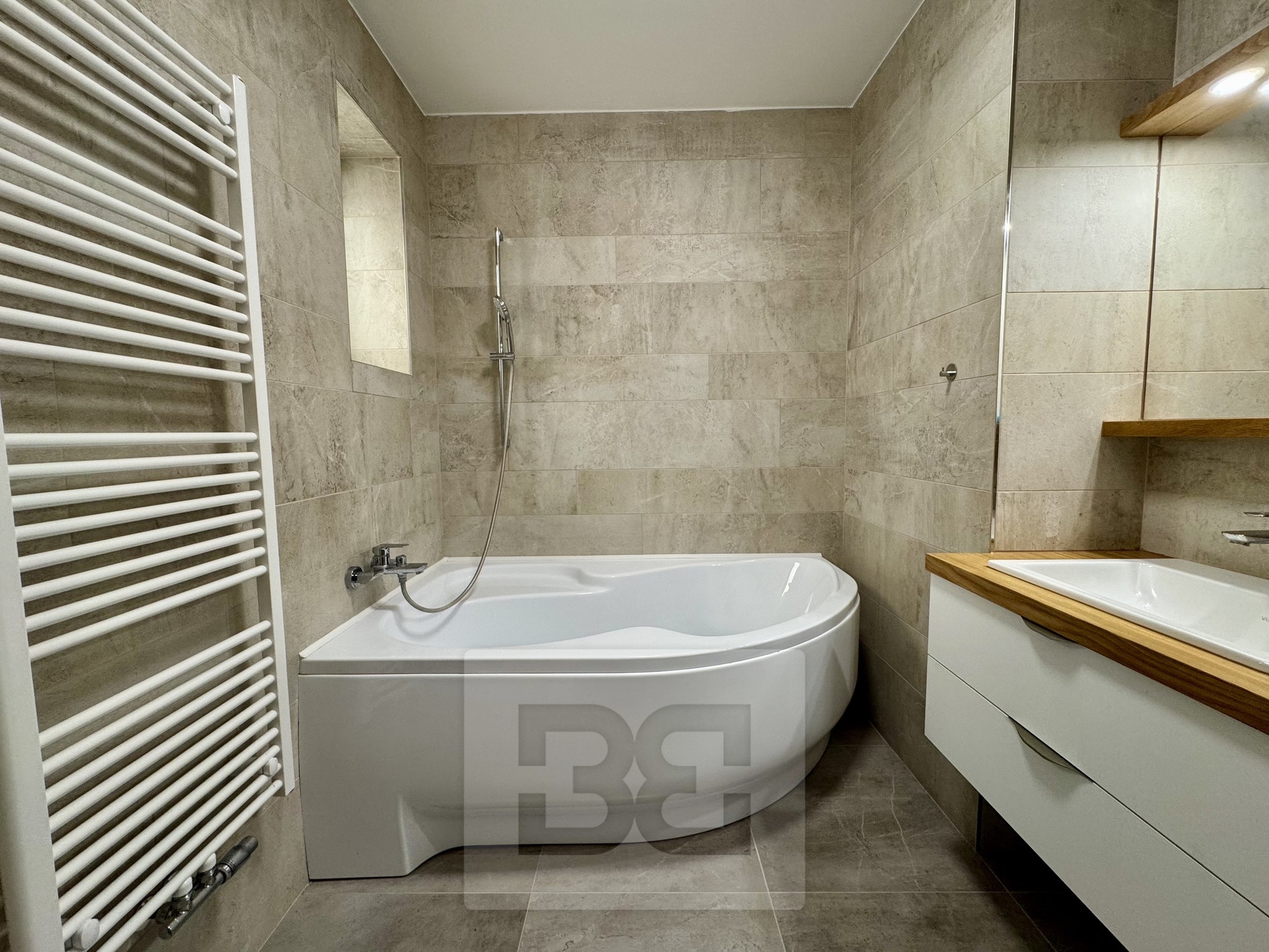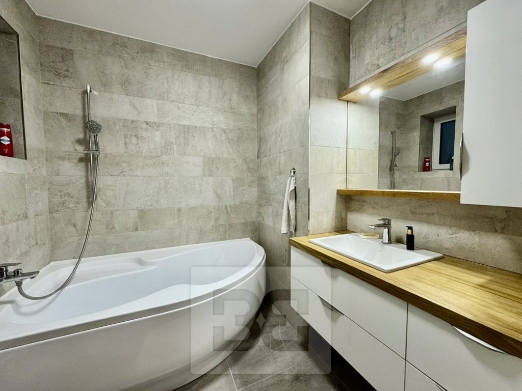 Byt prošel kompletní rekonstrukcí před dvěma lety – nové podlahy, moderní koupelna s vanou, samostatné WC a promyšlené úložné prostory v předsíni včetně elegantně skryté pračky.