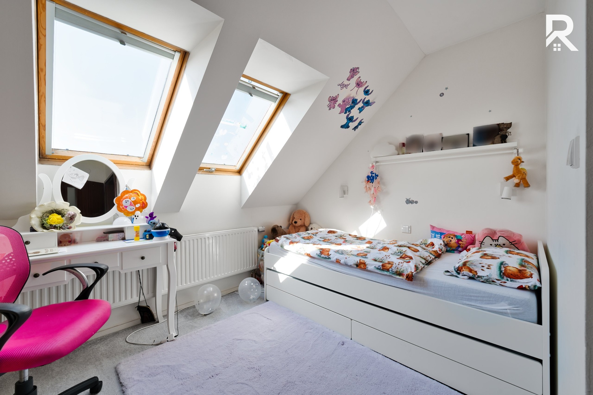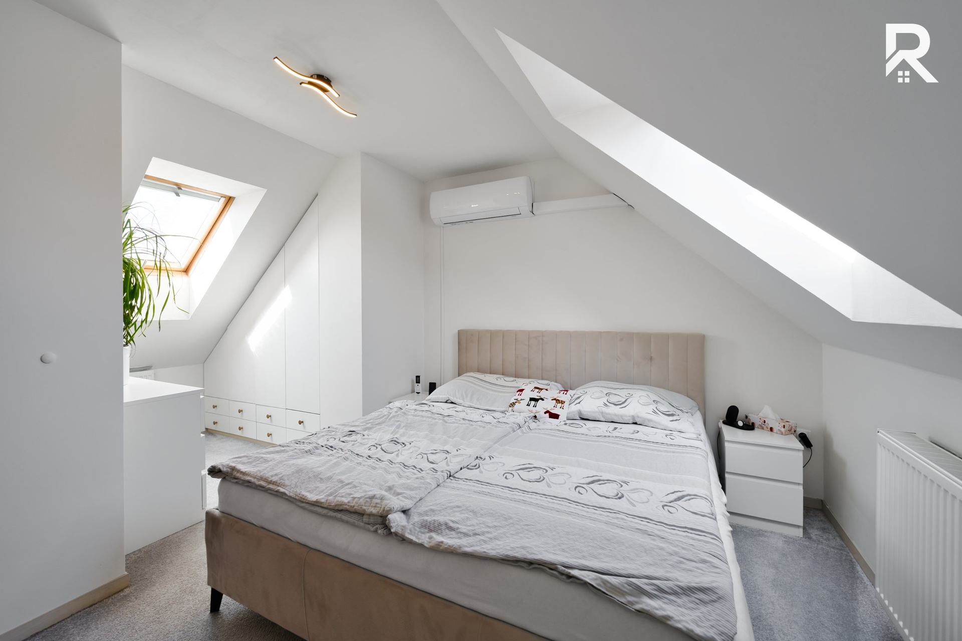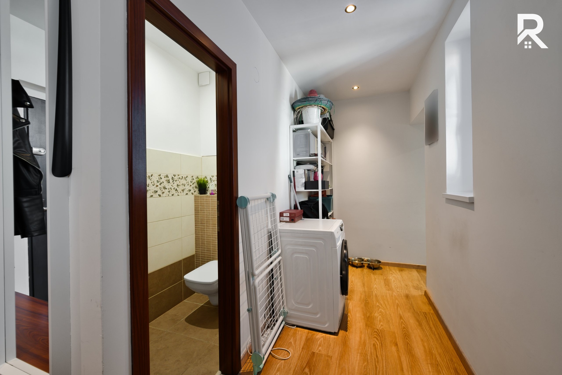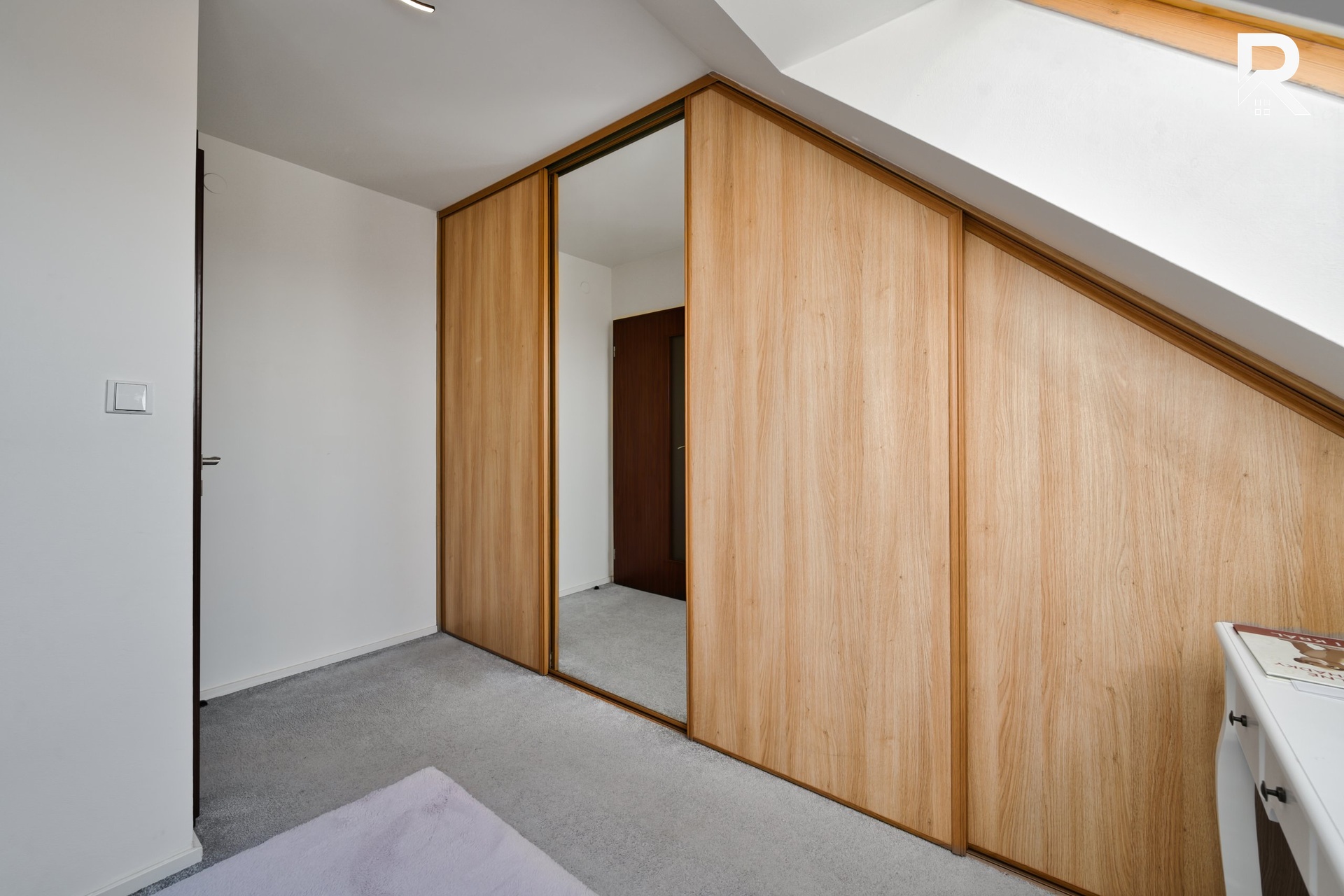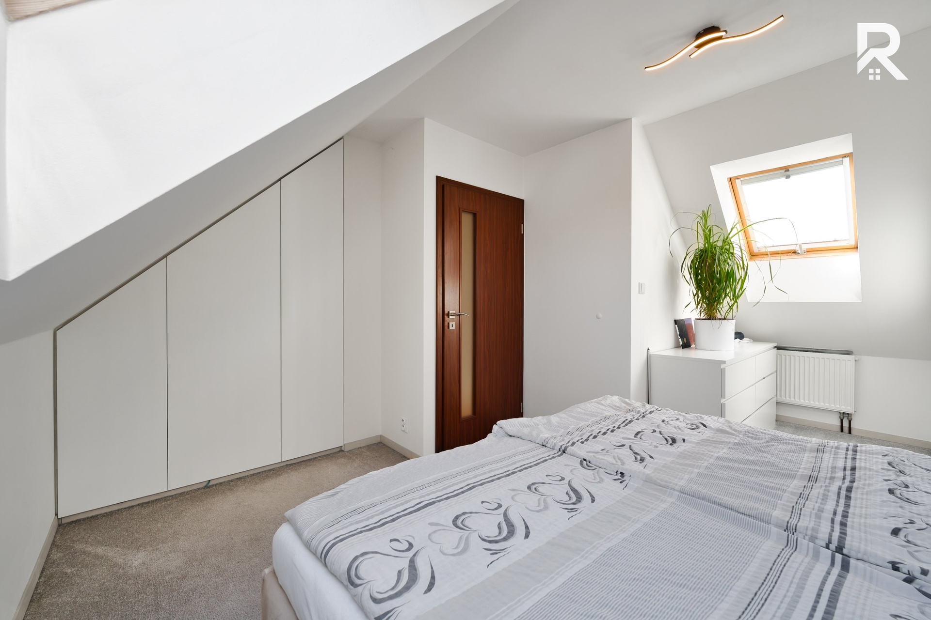 Samotný byt se nachází ve 4. nadzemním podlaží cihlového domu bez výtahu. Už při vstupu Vás přivítá prostorná chodba s dostatkem úložného prostoru v podobě vestavěných skříní, nechybí zde ani pračka a samostatná toaleta. Z chodby se plynule dostanete do dominanty celého bytu – velkorysého obývacího prostoru s kuchyňským koutem, který zaujme nejen svou vzdušností, ale i moderním designem. Kuchyňská linka je plně vybavena všemi spotřebiči, včetně myčky, lednice s mrazákem, trouby, digestoře a indukční varné desky. Obývací část zůstává zařízená – k dispozici je pohodlná sedačka, pracovní kout, TV stěna i televize. Praktickým benefitem je také úložný prostor pod schody, ideální pro uskladnění domácích potřeb či kuchyňského vybavení.