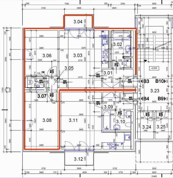 Celková plocha bytu je 65m2. Pokoj 21,3 s kuch. koutem, pokoje 14,9 a 11,6m2. Koupelna 5,9m2 s vanou, samostatné WC 1,7m2, předsíň 4,7m2, spojovací chodba mezi pokoj 1,6m2, balkon 3,2m2. K bytu náleží také prostorný sklep 5m2. K bytu ještě možné pronajmout samostatnou komoru / sklad na patře vedle bytu.