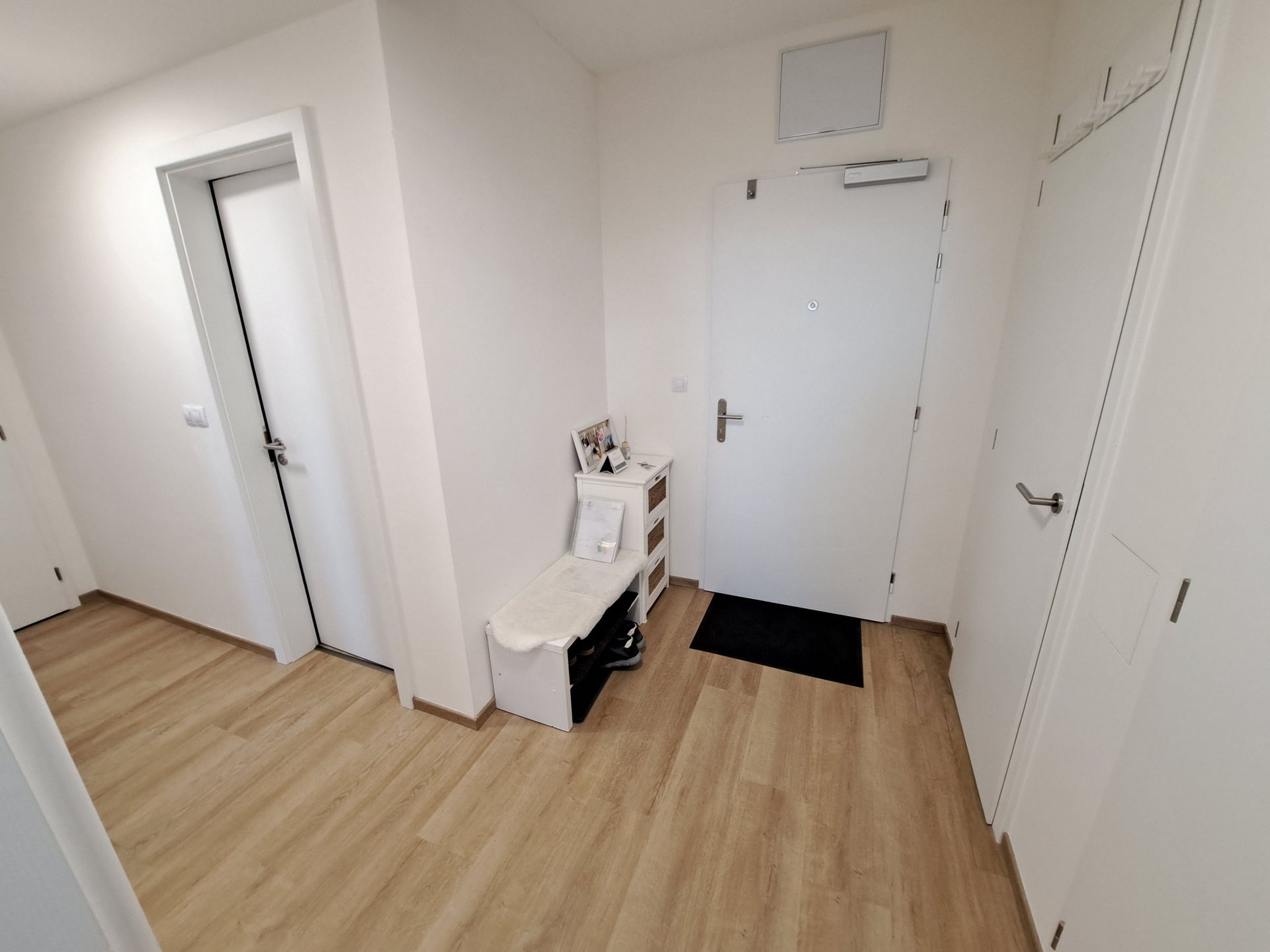 Chodba (botník, skříňka, osvětlení). Šatna/komora (2x policový regál).