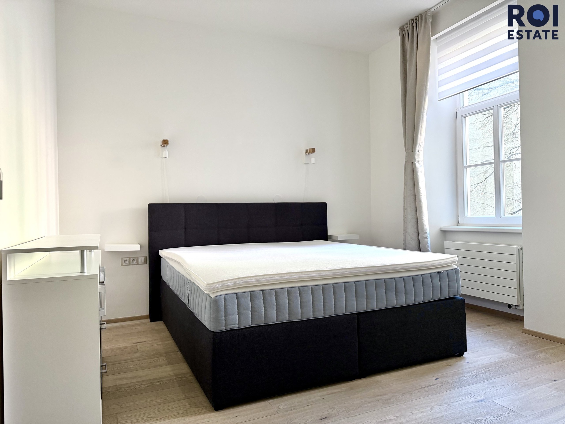 Kvalitní postel Hästens, designová svítidla, vestavěné skříně, stylová šatna u ložnice hlavní.