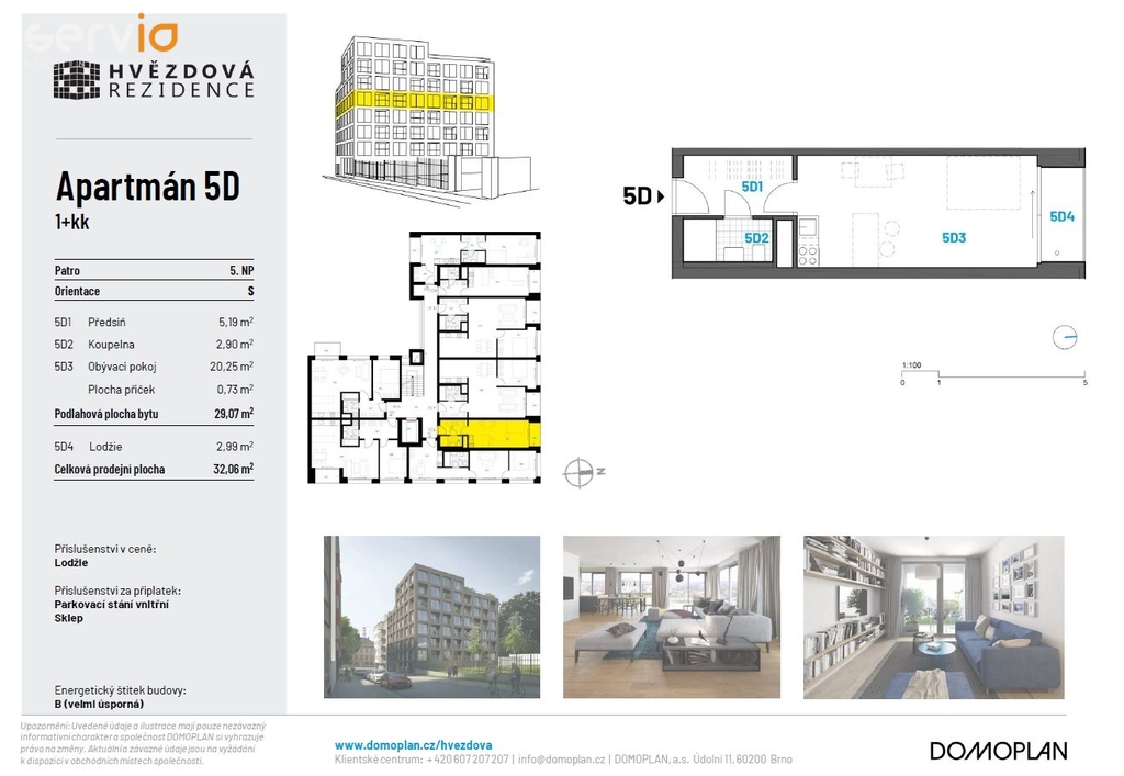 Nabízíme exkluzivně pronájem bytu 1+kk o velikosti 32,06 m2 (včetně 2.99 m2 lodžie), se sklepem a možností pronájmu krytého PS v objektu Rezidence Hvězdová, polyfunkční dům obklopený městským parkem, odkud je to na brněnské náměstí Svobody procházkou deset minut.