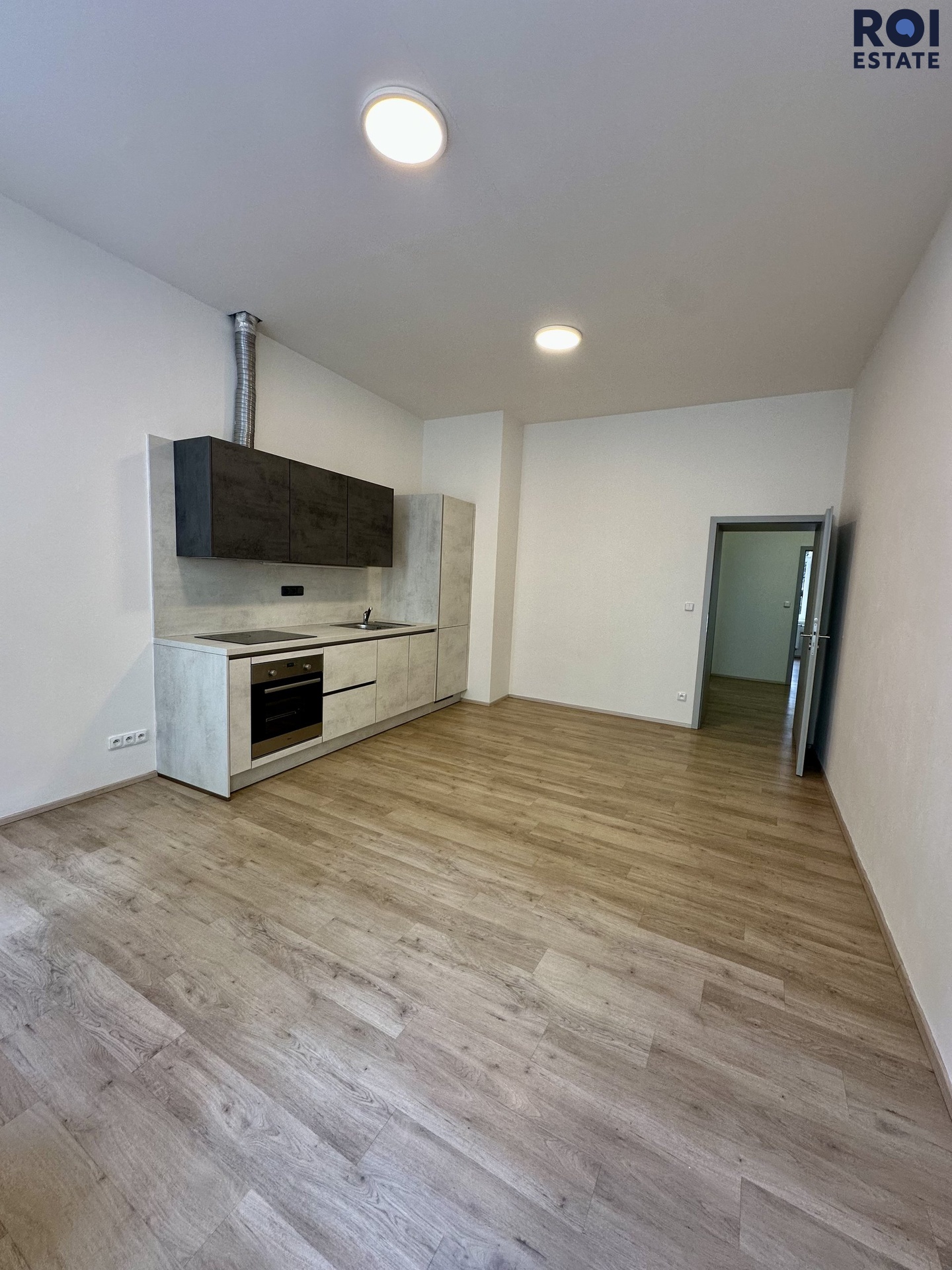 Interiér bytu je zrekonstruovaný a připravený k pohodlnému bydlení. Součástí je nová kuchyňská linka vyrobená na zakázku od truhláře, vybavená vestavěnou lednicí, myčkou nádobí, troubou, varnou deskou a digestoří. Praktickým benefitem je také vestavěná skříň v chodbě a vinylová podlaha v dekoru dřeva, která prostoru dodává příjemný a moderní vzhled.