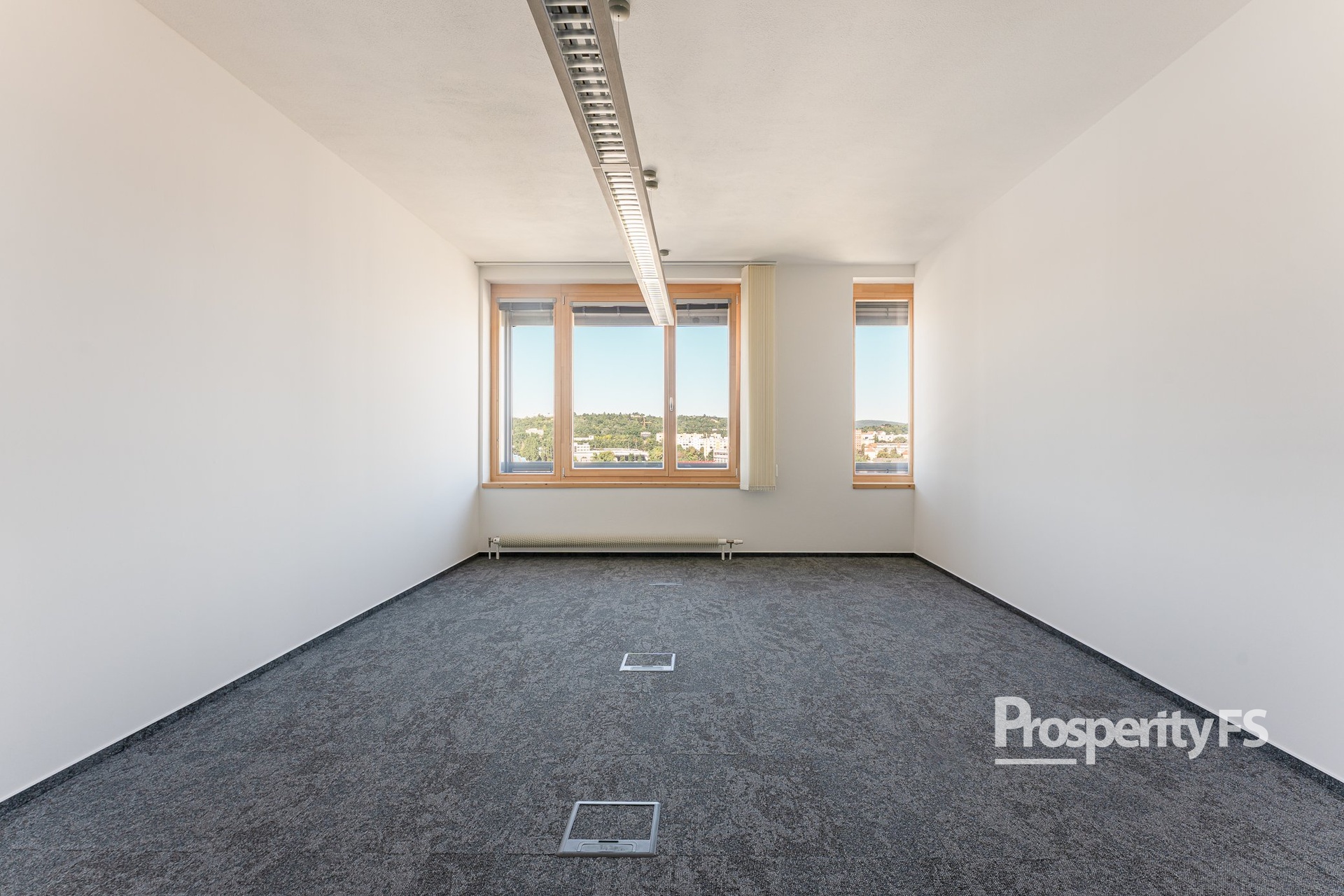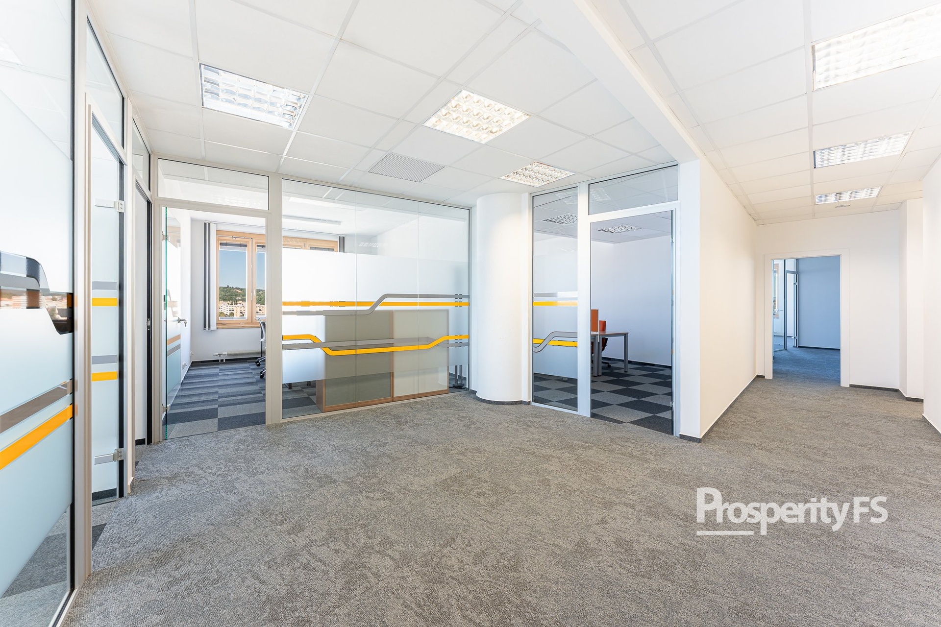 Každá kancelář je plně klimatizovaná, vybavená žaluziemi a vstup je zajištěn přes čipovou kartu.