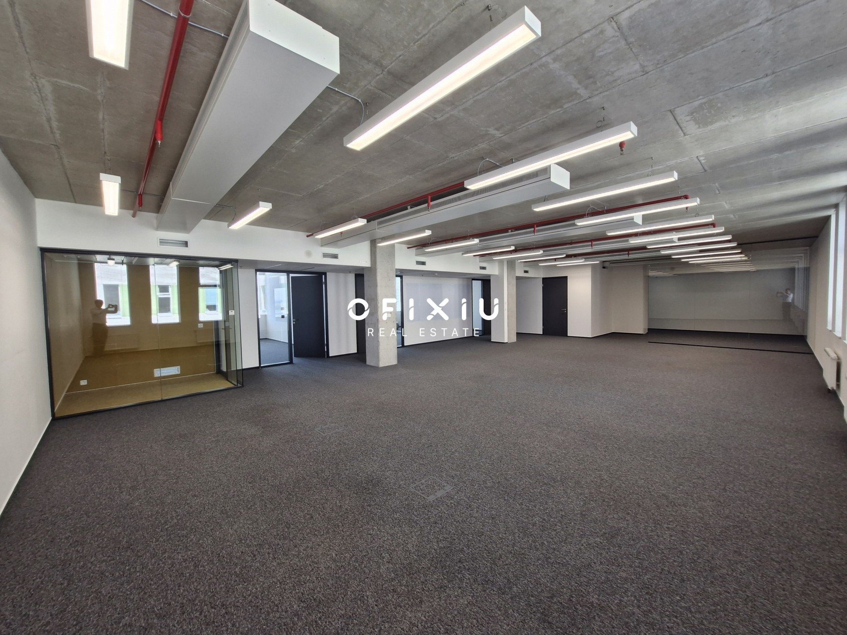 Prostory se nacházejí ve vyšším patře budovy a nabízejí otevřený, vzdušný layout, ideální pro moderní pracovní prostředí typu open space i pro vytvoření uzavřených kanceláří. Díky velkým oknům po celé délce fasády jsou kanceláře mimořádně světlé a poskytují příjemné pracovní prostředí s dostatkem denního světla. Výhled do okolí a vysoký standard technického provedení podtrhují profesionální charakter těchto prostor.