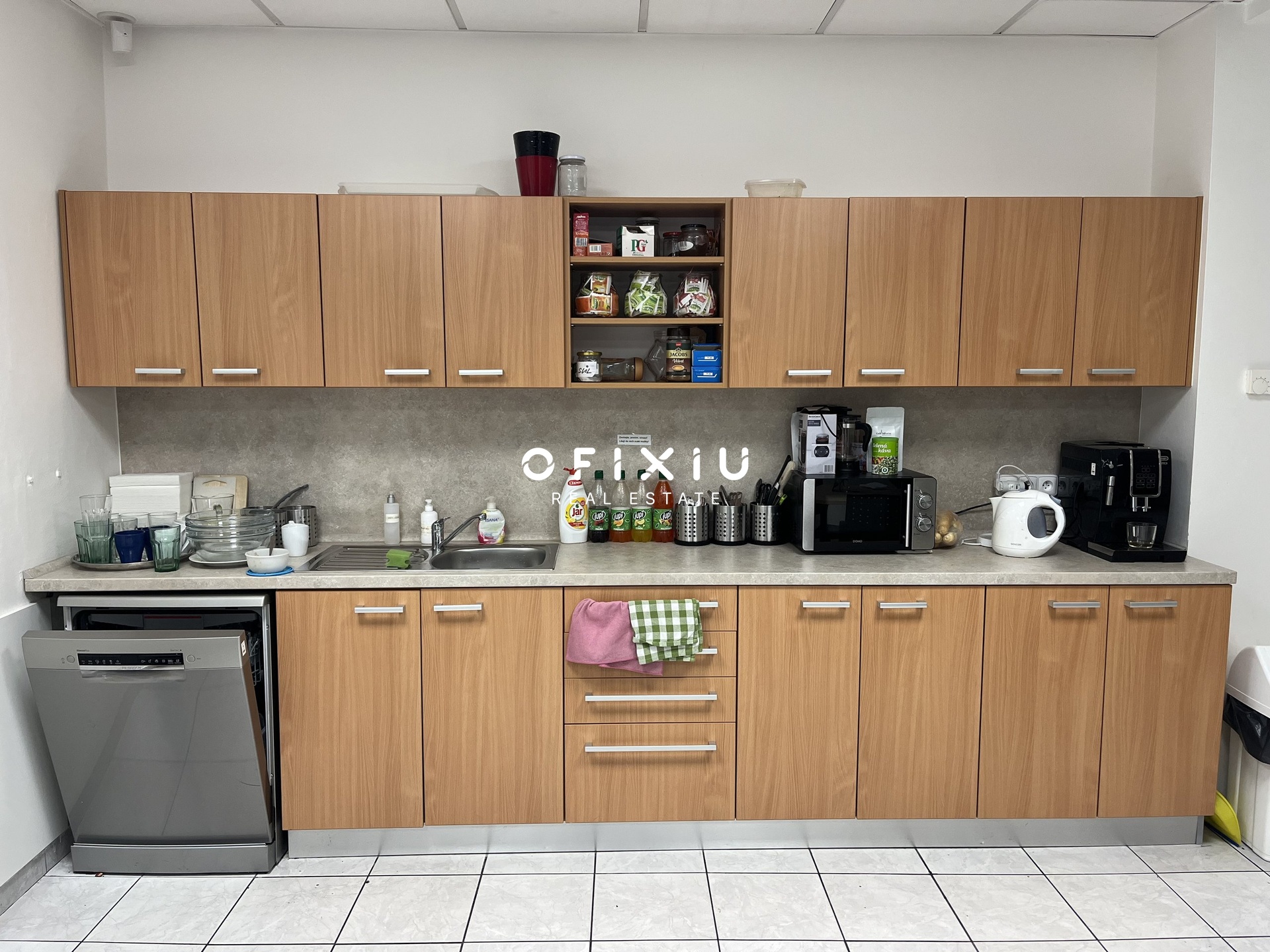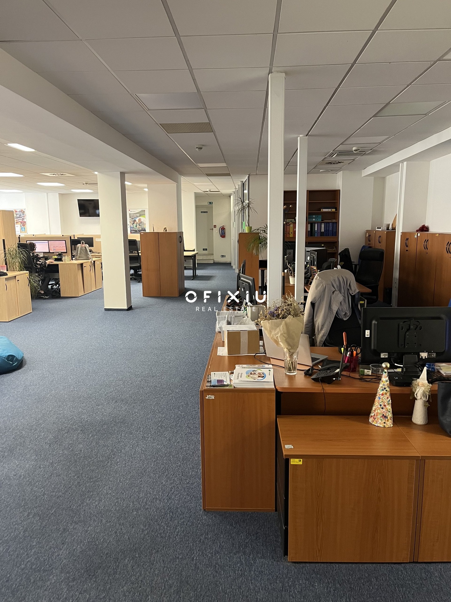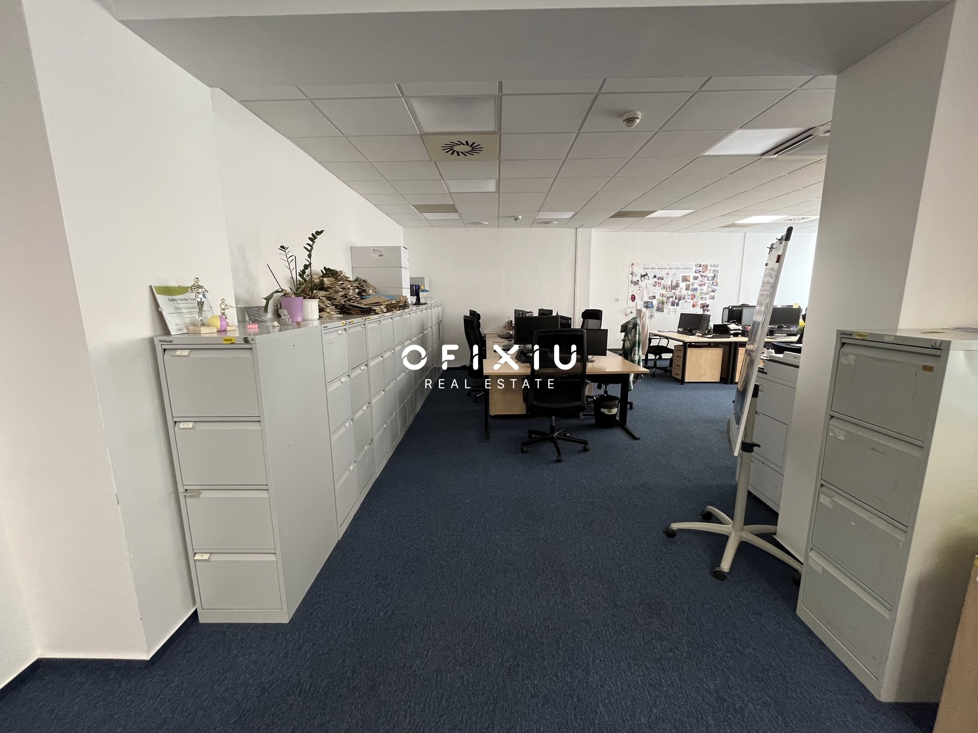 Interiér je světlý, moderní a klimatizovaný, s dostatkem denního světla díky proskleným příčkám.
